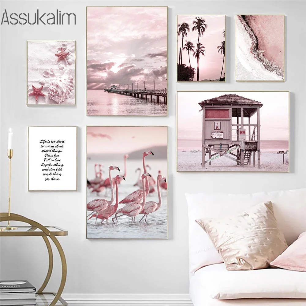 Настенные постеры розового цвета с изображением единорога на холсте...