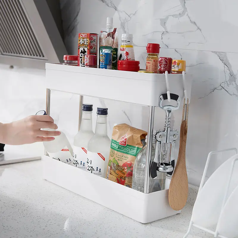 Новый кухонный стеллаж для хранения с 34-уровневым зазором, тонкая скользящая башня, подвижная сборная Пластиковая Полка для ванной, колеса, экономичный Органайзер
