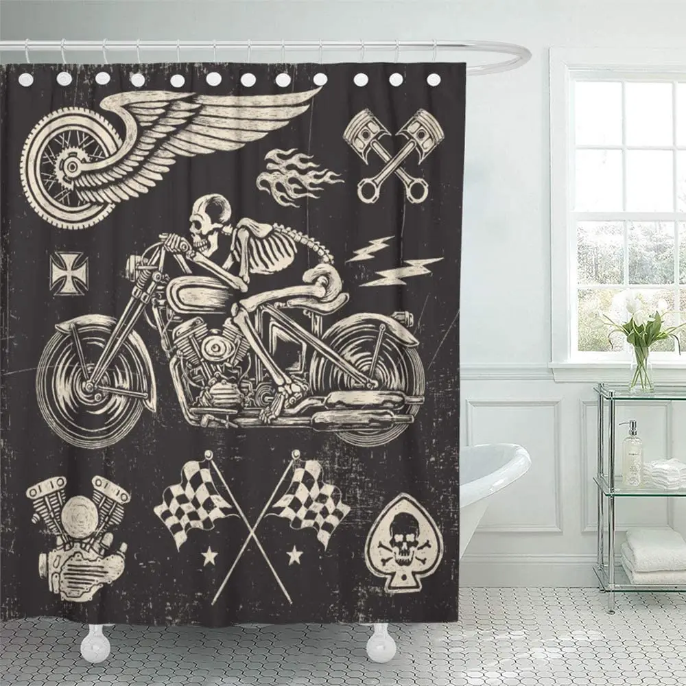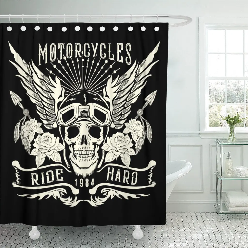 Мотоциклетный шлем с черепом, крыльями, татуировкой, патч, Байкерская занавеска для душа, водонепроницаемая Полиэстеровая ткань