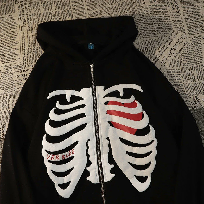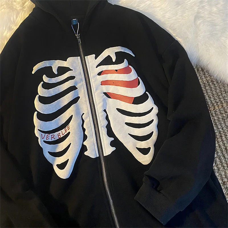 Свитшот на молнии, худи в готическом стиле с принтом черепа, Y2K, в стиле хип-хоп, стиль Харадзюку, искусственное пальто, Топ большого размера для пар