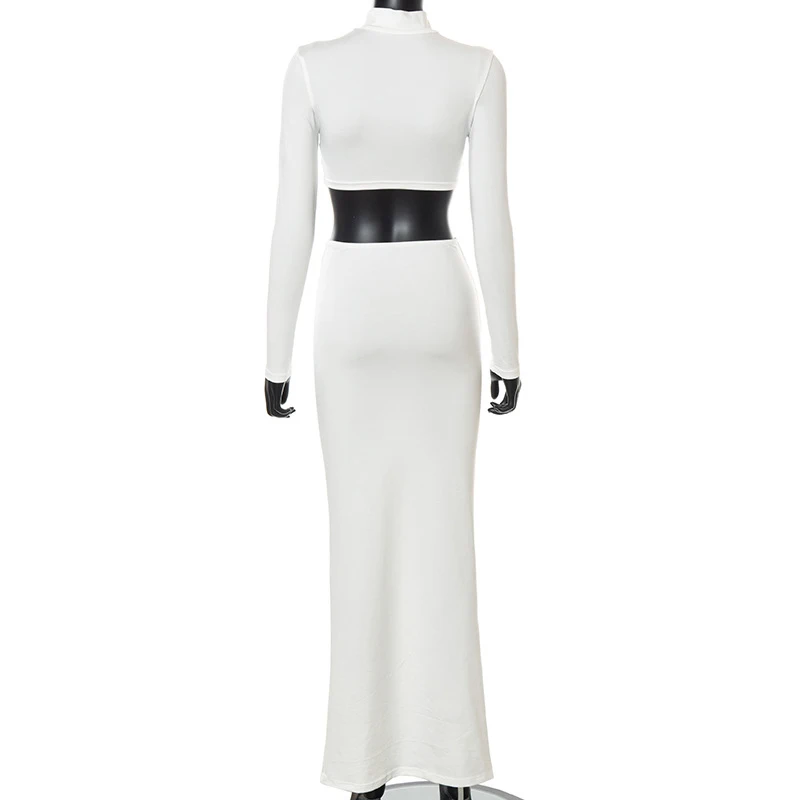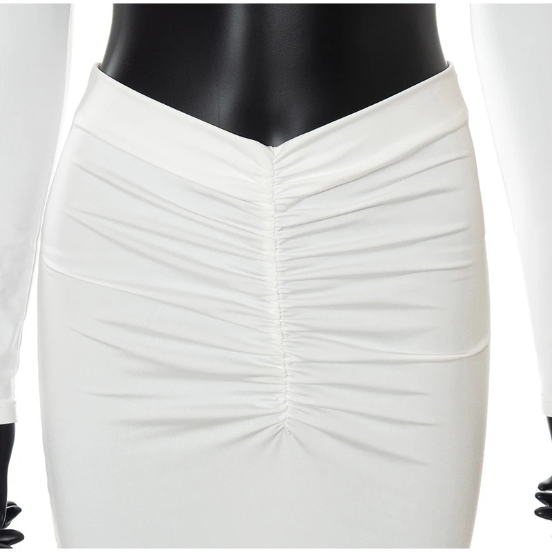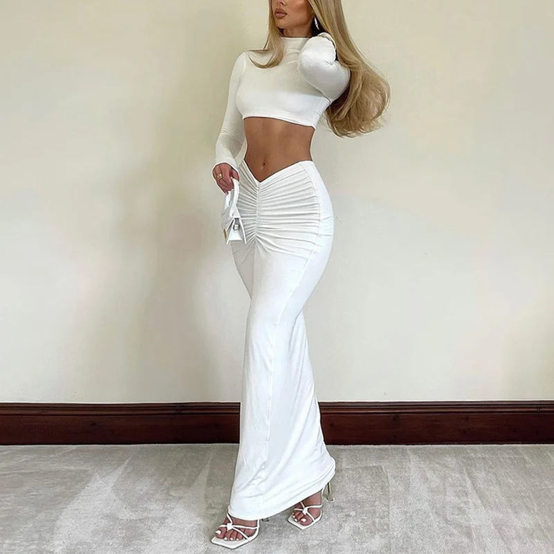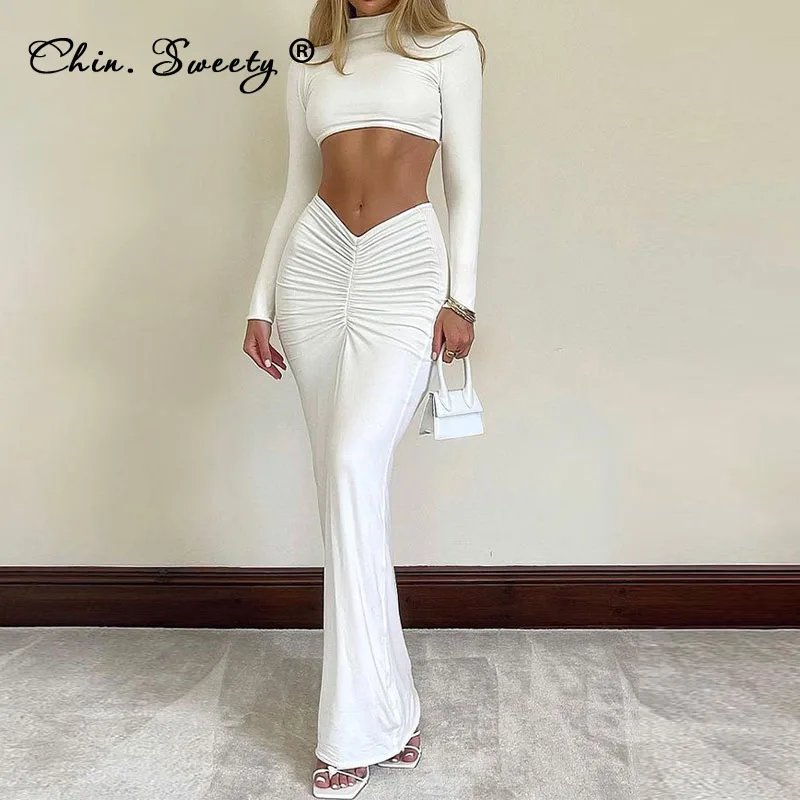 Style 22021 Autumn Long Sleeve Turtleneck Tops Ruched Maxi Skirts