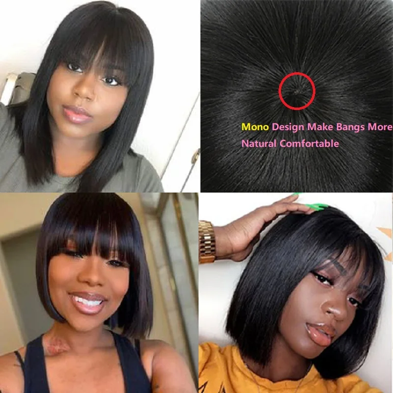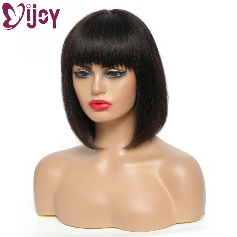 Короткие парики из человеческих волос, с челкой, для чернокожих женщин, бразильский парик из неповрежденных человеческих волос, естественный цвет, парик для машинной работы IJOY