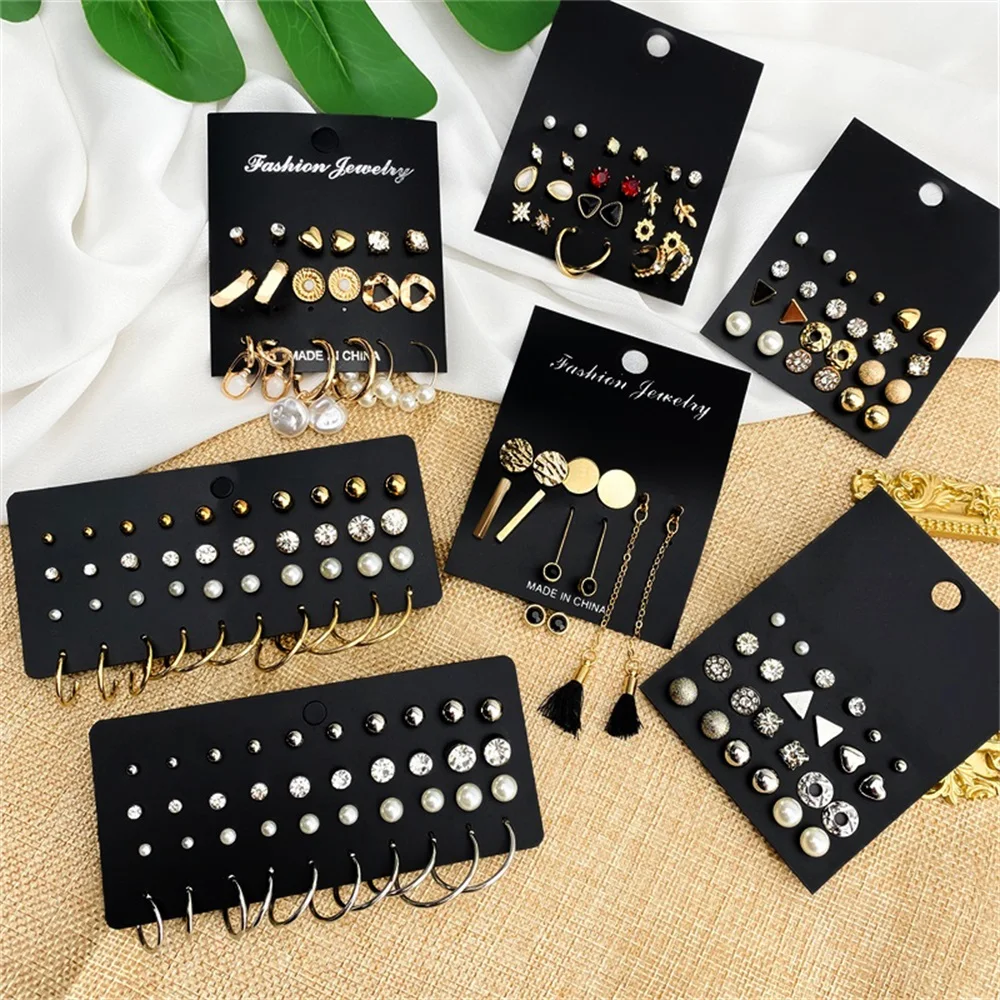 Новые 12 пар компл. Женские серьги, жемчужные серьги для женщин, модные богемные украшения, серьги-гвоздики 2021 с геометрическим кристаллом в форме сердца