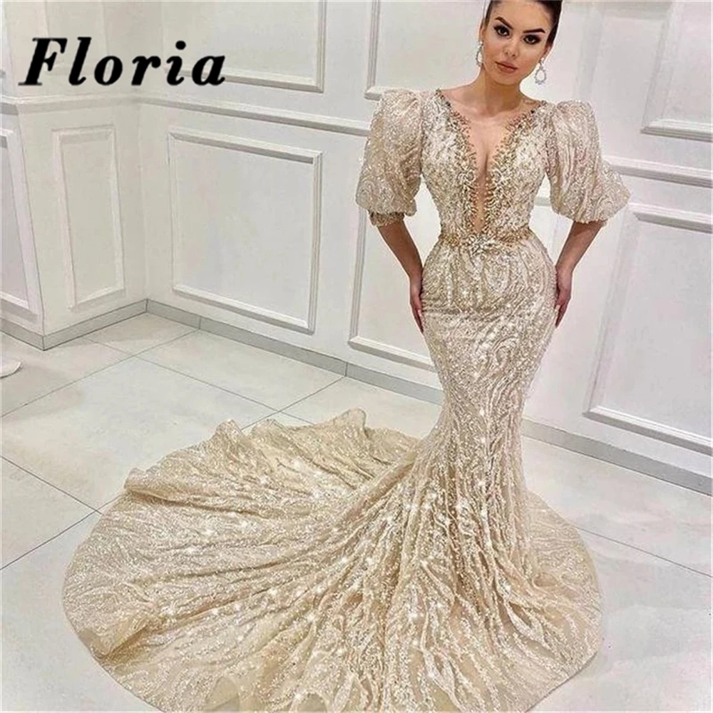 Женское вечернее платье с блестками Floria воротник с бисером, платье для выпускного вечера с блестками в арабском стиле Дубай, 2021