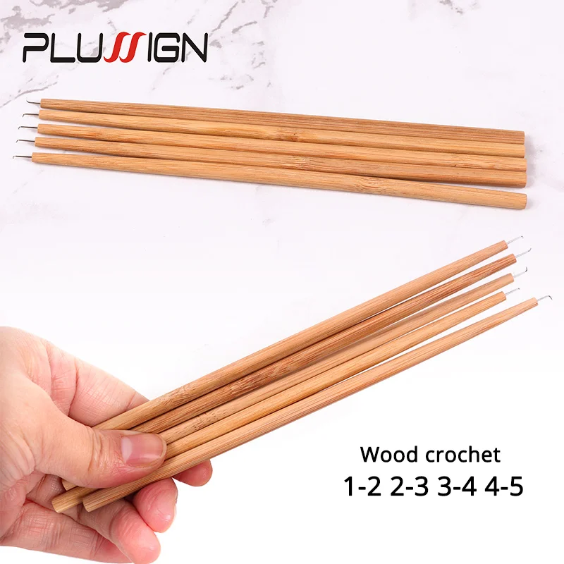 4 sizes of crochet and hairnet setWooden handle Ventilating Needle and Transparent Base Hair Net combo