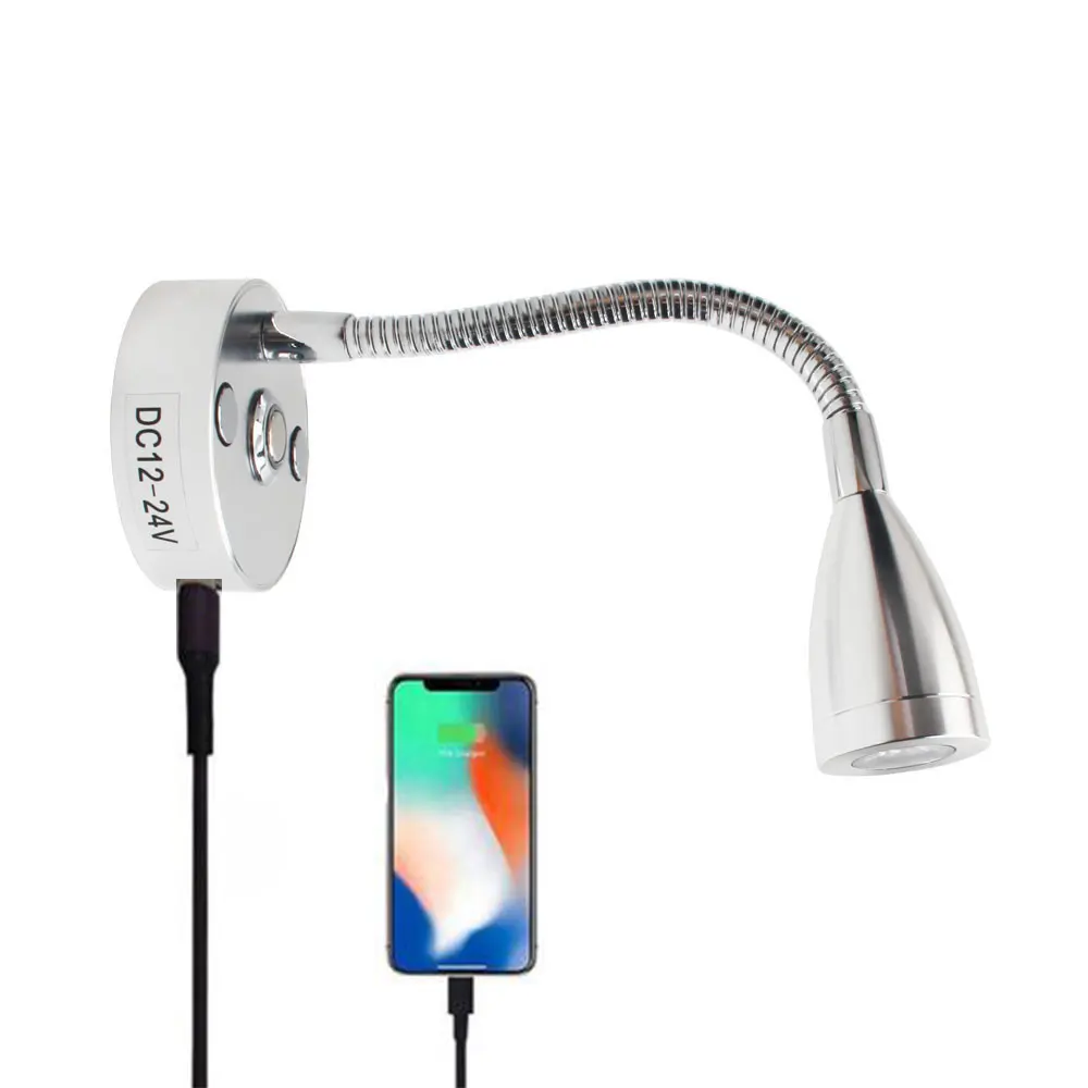 Светодиодный гибкий настенный светильник для дома на колесах, лодки, 12 В, 24 В постоянного тока, лампа для чтения, сенсорный переключатель с USB-портом для зарядного устройства для спальни, интерьера, дома на колесах, в отеле