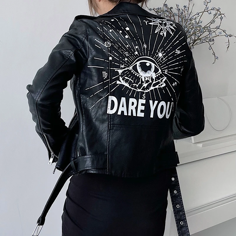 Куртка женская из искусственной кожи, на молнии, с 3D-принтом