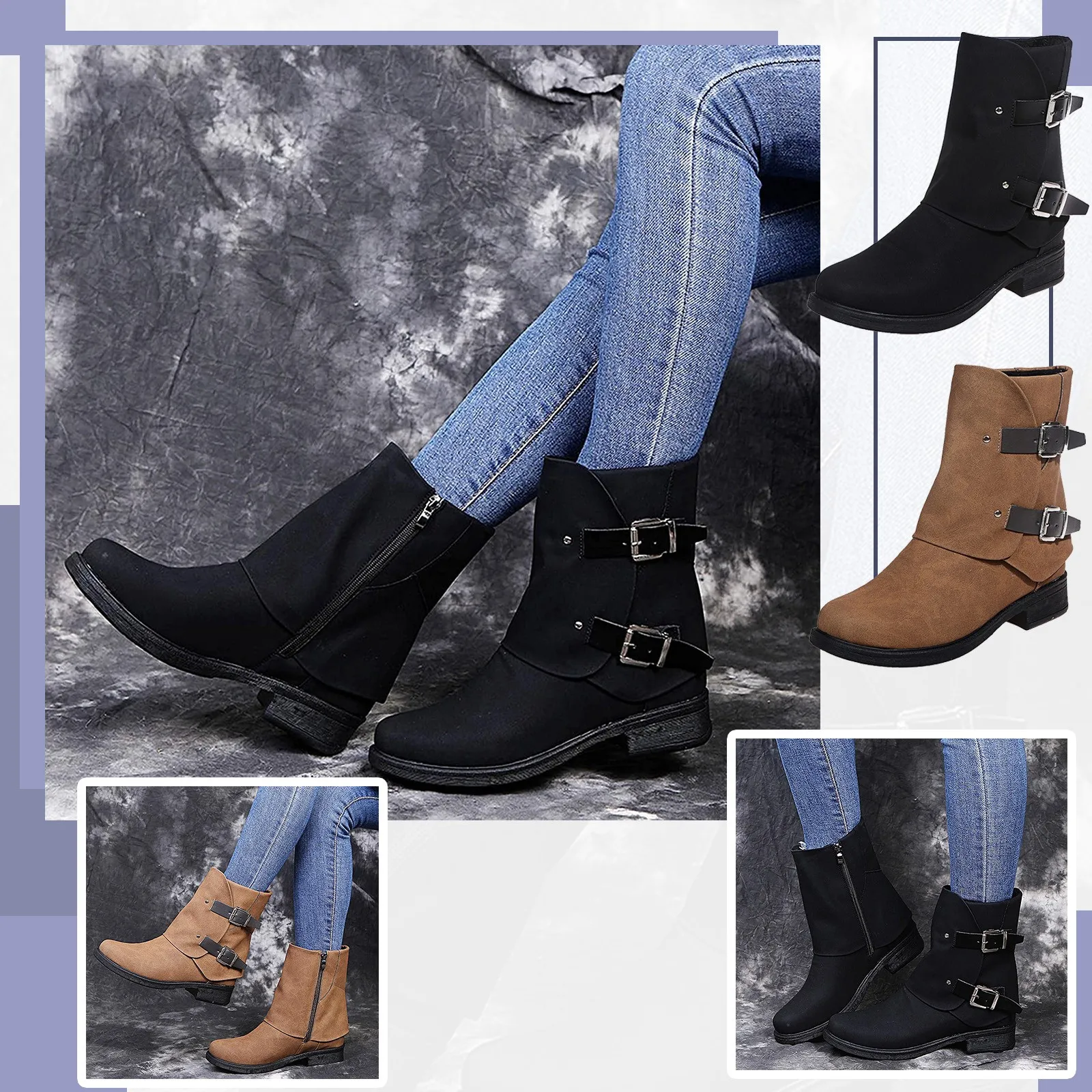 Женские ботинки в стиле ретро; Женские кожаные ботинки с боковой молнией; Ботильоны с пряжкой