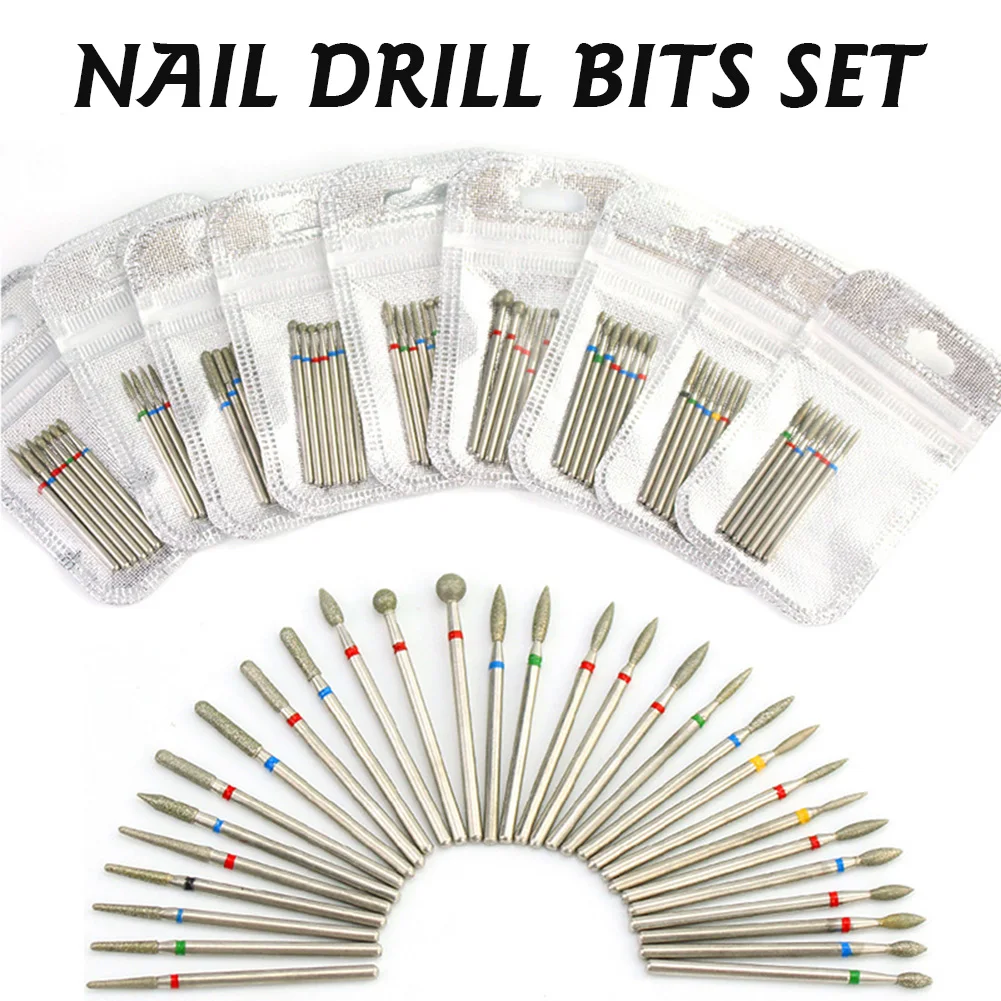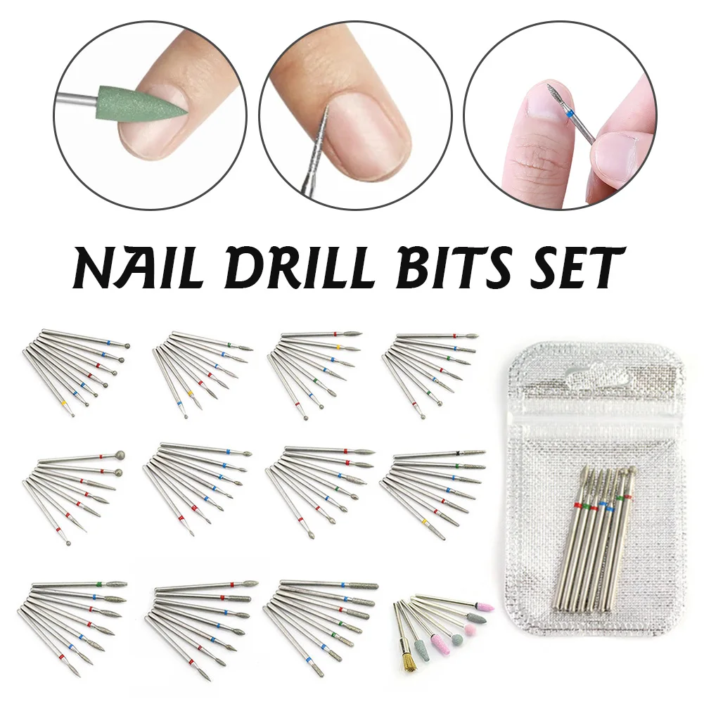 12 комплектов сверл для ногтей Набор для натурального акрилового геля пилка для кутикулы ногтей сверла для маникюра и педикюра инструмент для домашнего салона