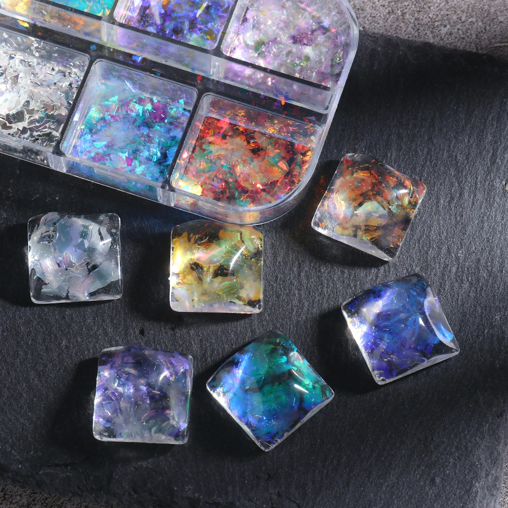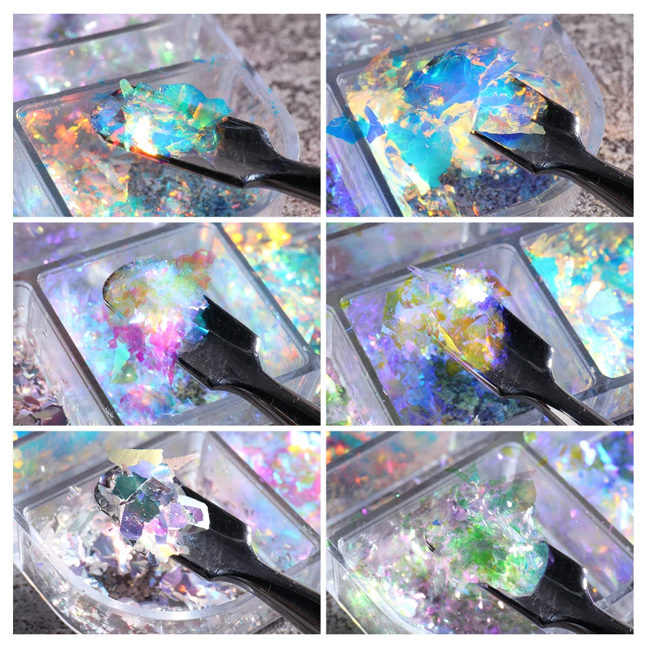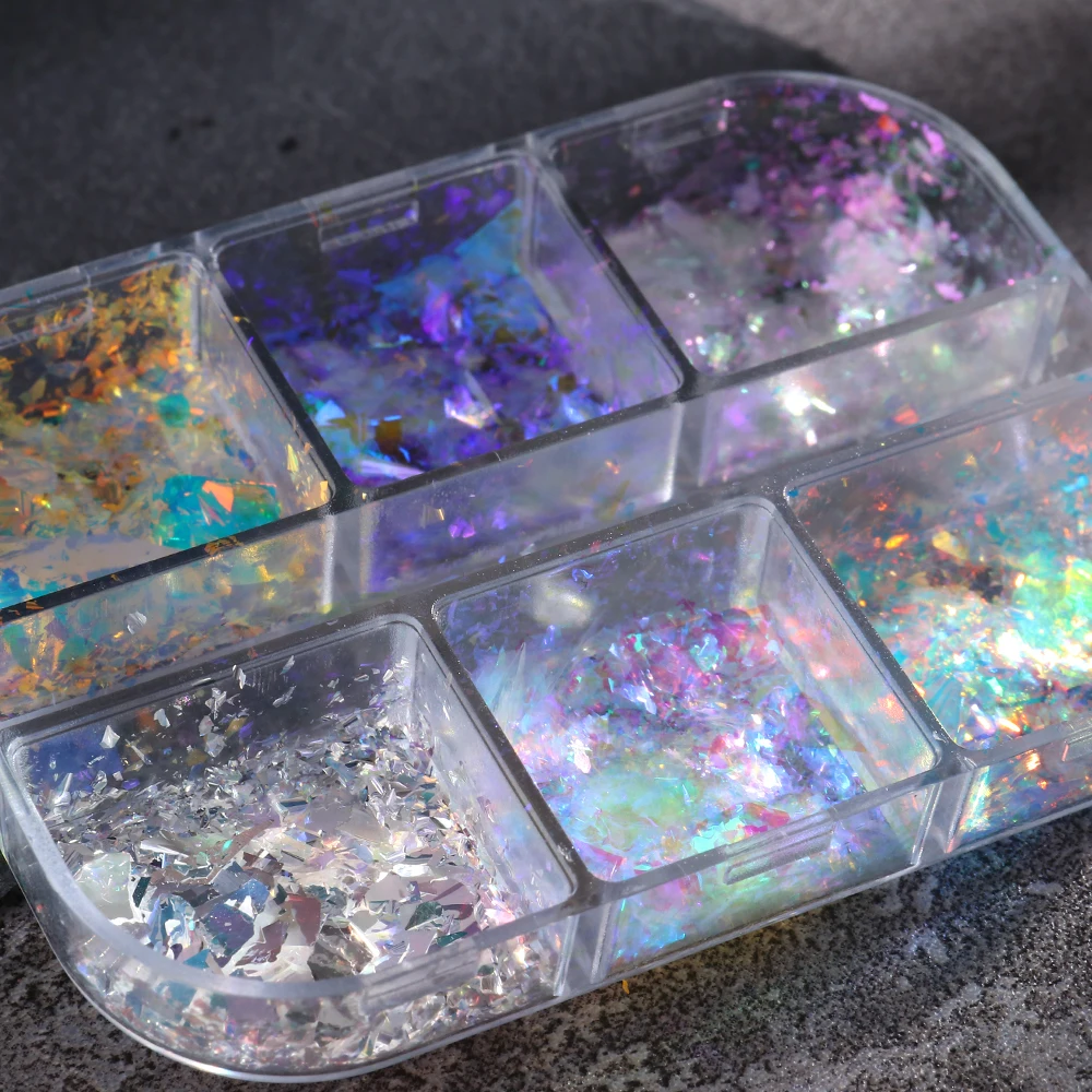 Блестки Aurora, 6 сеток, переливающиеся, для кристаллы для ногтей, с опаловыми огненными блестками, хлопья гвоздь, художественное украшение, зимний голографический дизайн NTXR