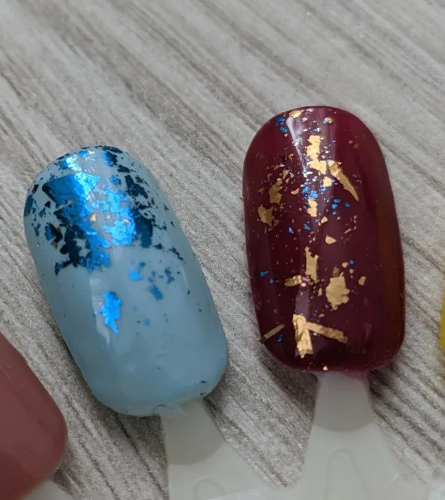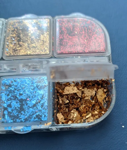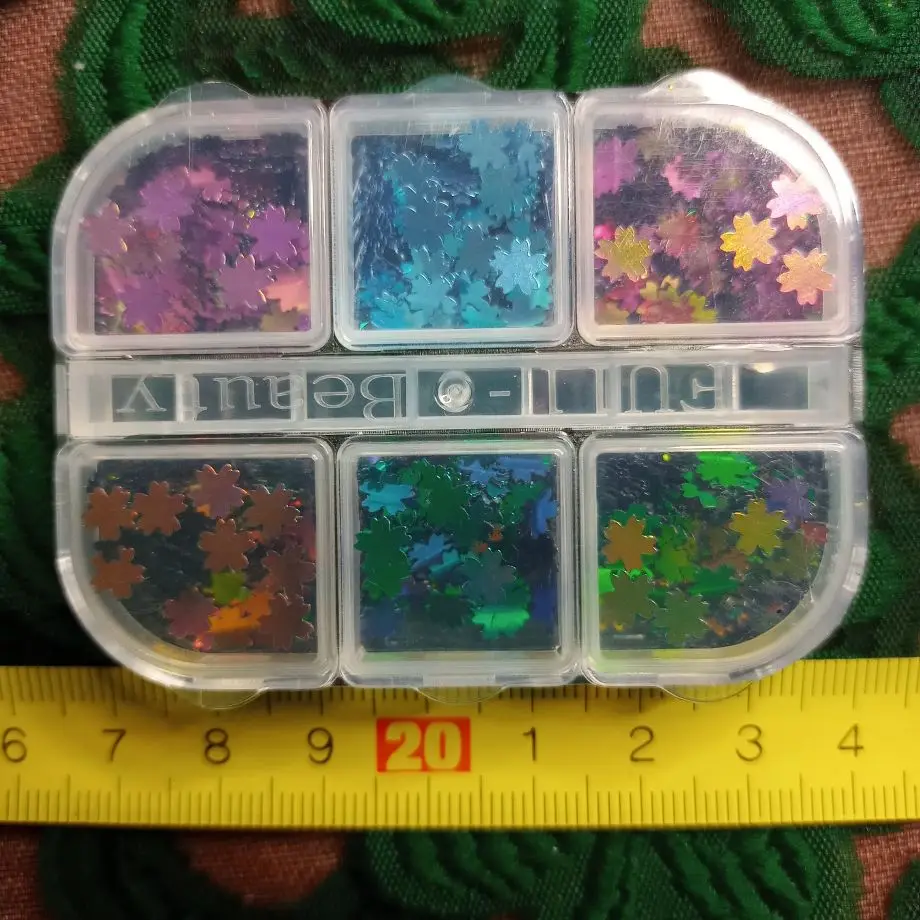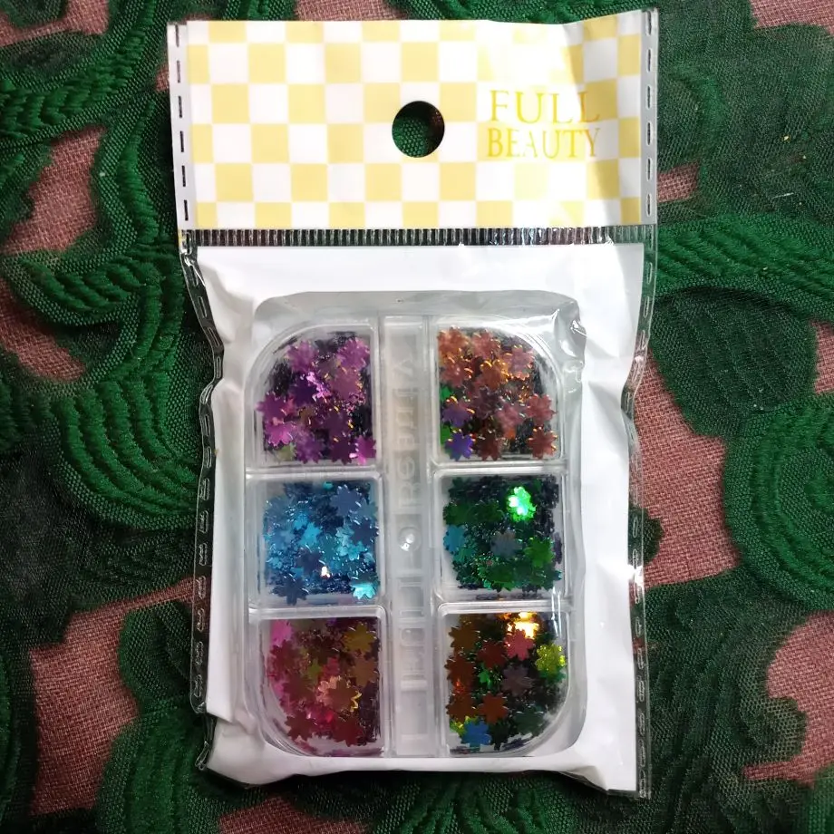 Продавец прислал за монетки. Коробка небольшого размера, средней наполненности. Похоже на мелкую поталь, попадаются и крупные кусочки. Втирается на топ без липкого слоя. Хлопья очень тонкие и при открытии коробки могут немного рассыпаться. На ногтях смотрится потрясающе, не ожидала такого эффекта. Однозначно 5 звезд