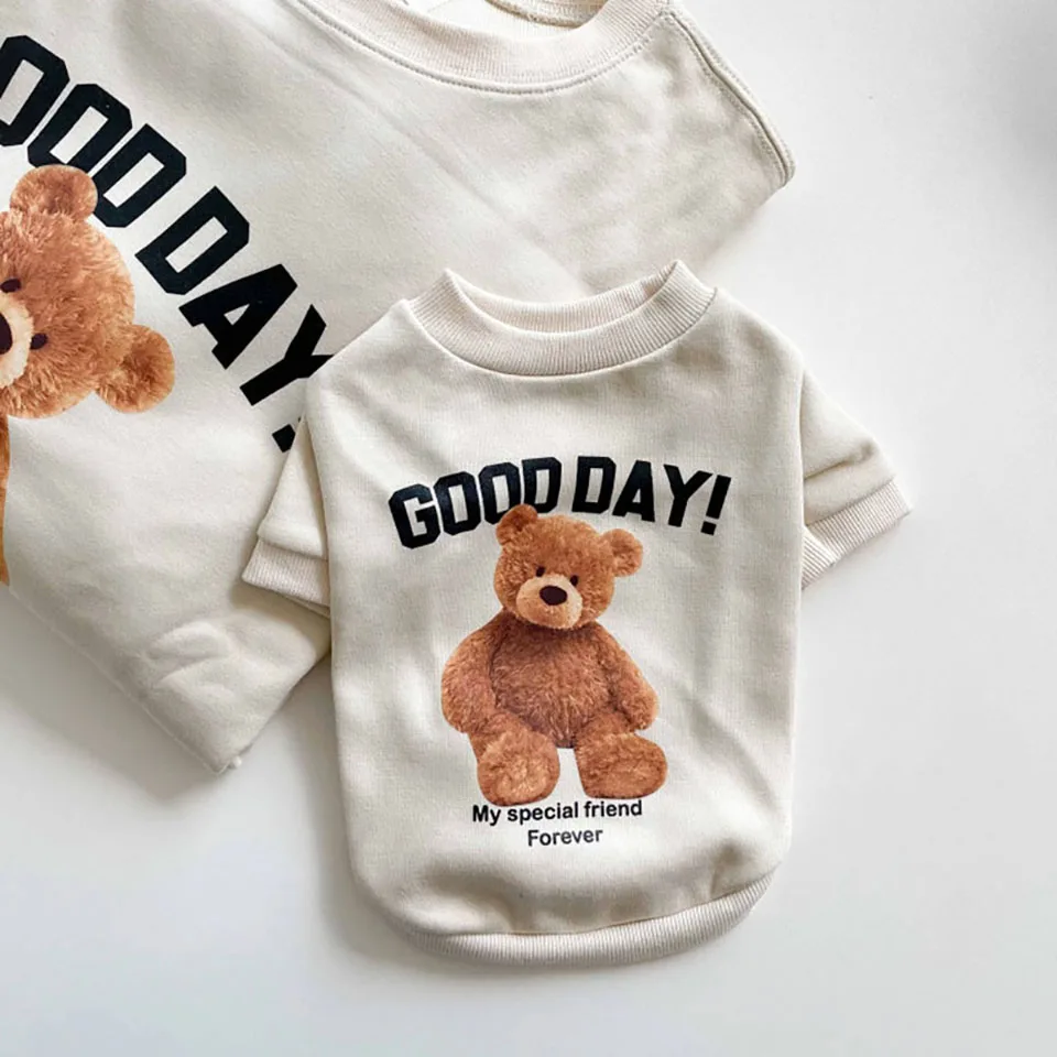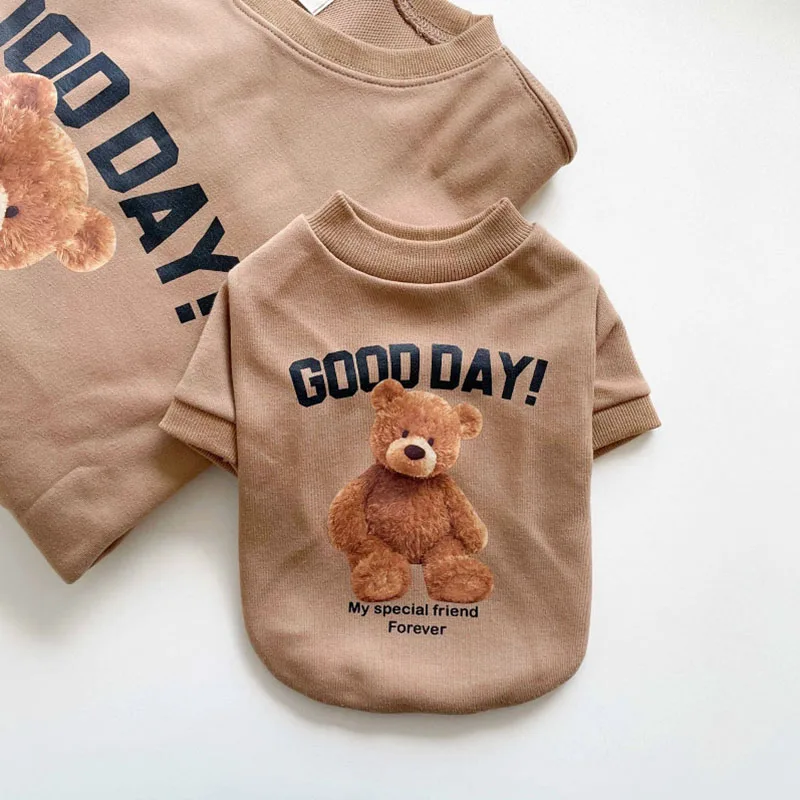 Осень-зима свитер со щенком, одежда для собак с принтом медведя из мультфильма, пудель Бишон, теплый пуловер, мягкая одежда для собак с двумя лапками