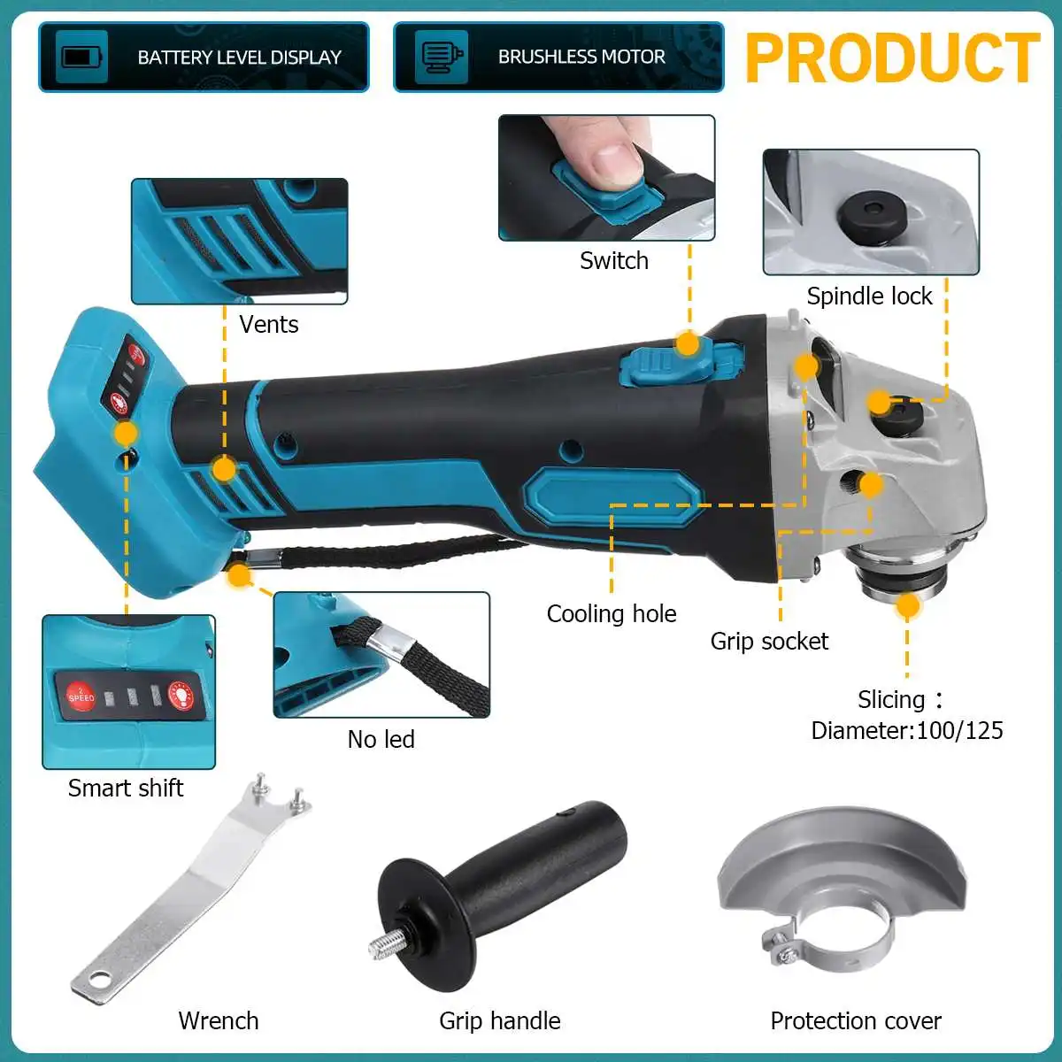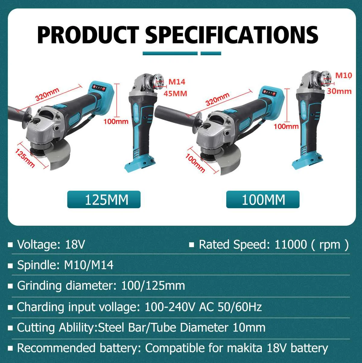 Беспроводная угловая шлифовальная машина BLMIATKO M14, 18 в, шлифовальная машина, режущая электрическая угловая шлифовальная машина, бесщеточный электроинструмент