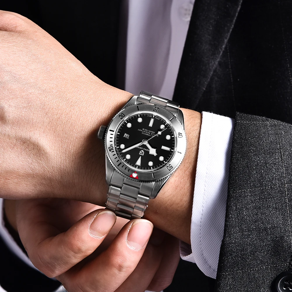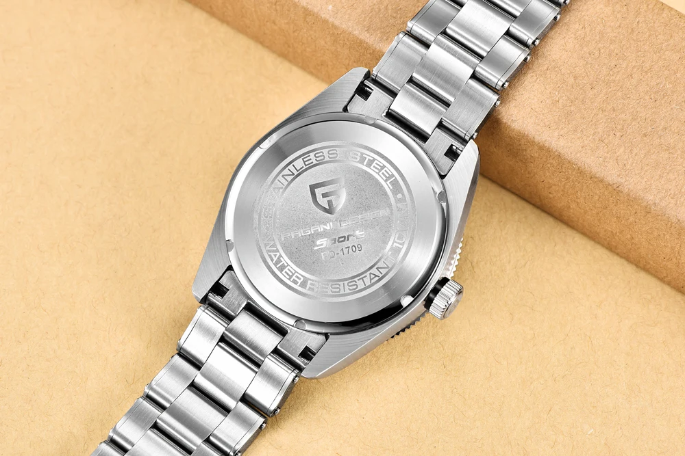 ● Водонепроницаемость 100 М: чехлы для часов идеально герметичны, наши часы Pagani водонепроницаемы до 100 м (10 бар). Чехол из нержавеющей стали оснащен винтовой головкой, что улучшает водонепроницаемость. Подходит для плавания и дайвинга, но не в горячей весенней воде