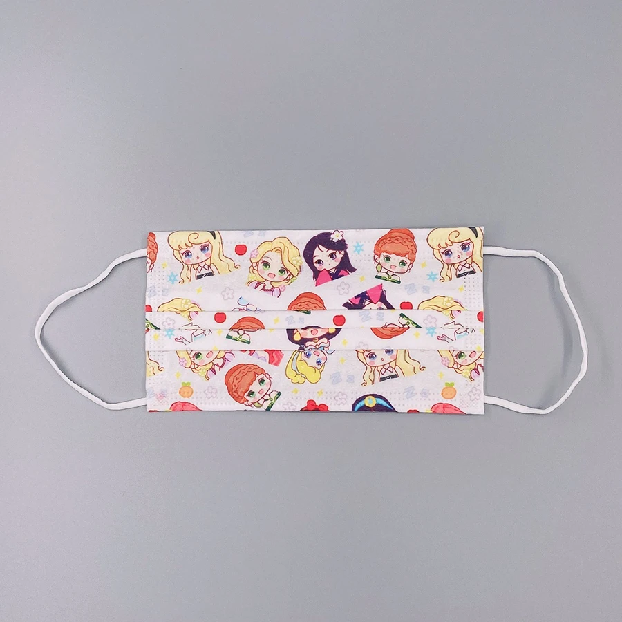 Модная одноразовая детская маска для лица, защитная детская маска, 3-слойная, белая, Снежная, мультяшная маска принцессы для рта, пылезащитный респиратор