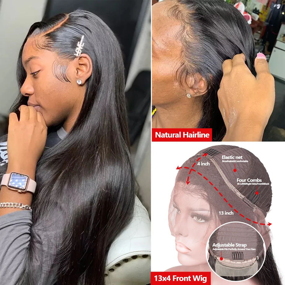 Парик бразильский прямой длиной 28, 30 дюймов, 13x 4, парики из человеческих волос на сетке спереди, парик с прозрачной сеткой спереди для женщин, предварительно выщипанные женские 150 Реми