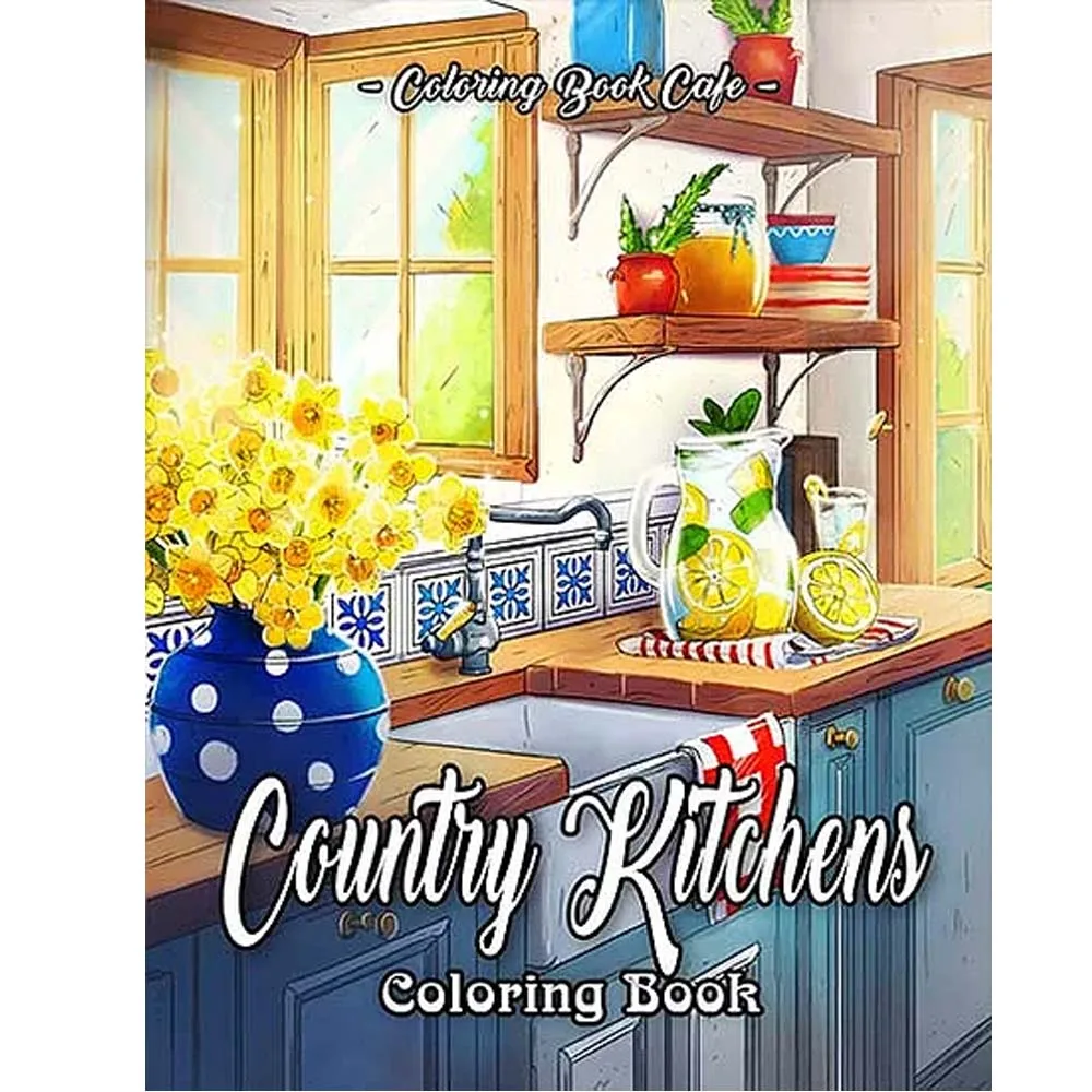 Книжка-раскраска сельская кухня: книжка-раскраска для взрослых с очаровательными и деревенскими интерьерами кухни, 25 страниц