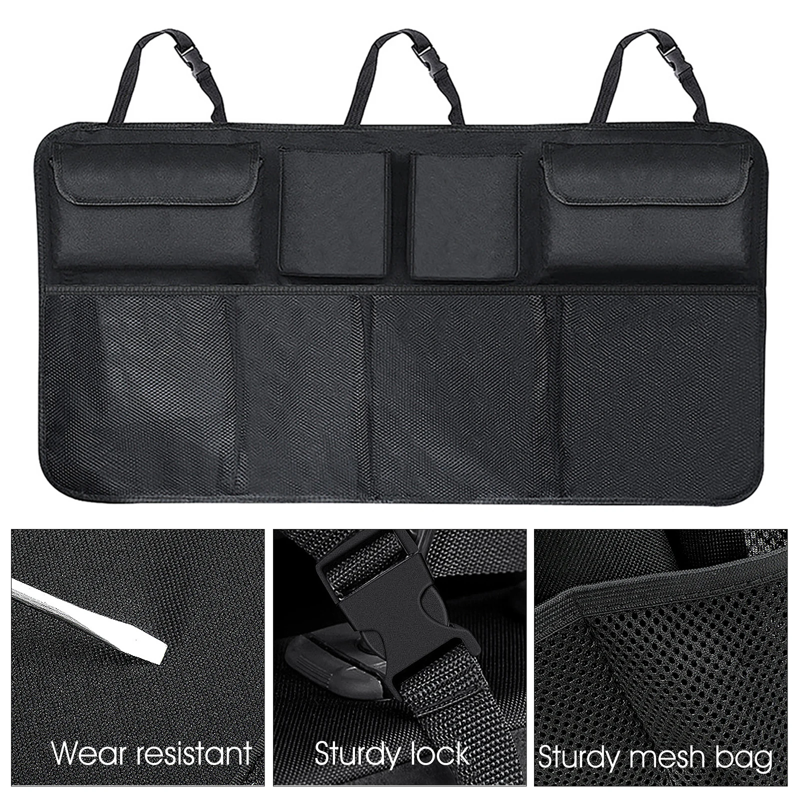 Подвесной органайзер для багажника автомобиля и сумка для хранения, складной висячий мешок большой вместимости, легко устанавливается и моется, компактный органайзер для багажника джипов, внедорожников, фургонов, сетчатых кармановХарактеристика:Высококачественный материал: наш органайзер для багажника автомобиля изготовлен из высококачественной ткани Оксфорд с 4 карманами, 4 легких нейлоновых сетчатых кармана и 3 пряжками. Прочный, водонепроницаемый и устойчивый к царапинам, обеспечивая его долговечность.Подходящий Размер: 34,25 дюйма в длину и 18,11 дюйма в ширину. Подходит для большинства автомобилей, внедорожников, грузовиков и 90% автомобилей. Необходимо иметь для взрослых поездок по дорогам, очень полезно и удобно для поездок по дорогам. Наша складная сумка для хранения не занимает много места для хранения.Держите его в порядке: ваш багажник грязный? Это определенно поможет. Есть 4 глубоких кармана и сетчатые карманы для дополнительного места для хранения. Вы можете положить инструменты, игрушки, закуски, книги и другие предметы вместе и организовать. Когда вы спешите, вы также можете легко найти все, что вам нужно. Обеспечьте чистый багажник.Легко установить и очистить: быстро установить и удалить в течение нескольких секунд, использовать регулируемый плечевой ремень, крючок на подголовник, и сделать. Можно стирать и чистить влажной тканью.Для консультации по продукту, пожалуйста, свяжитесь с нами. Мы к вашим услугам в любое время.Спецификация:Название продукта: Автомобильная складная сумка для хранения багажникаЦвет: черныйМатериал: ткань ОксфордРазмер изделия: общая длина x Общая ширина: 87x4 6 см/34.25x18.11 дюймовУпаковка: OPPВес: 470 гПримечание:Вследствие различных особенностей цветопередачи на разных мониторов и светильник эффект, фактический цвет элемента может быть s светильник ly отличается от цвета, представленного на снимках. Спасибо!Возможны отклонения в 1-2 см вследствие измерений вручную.