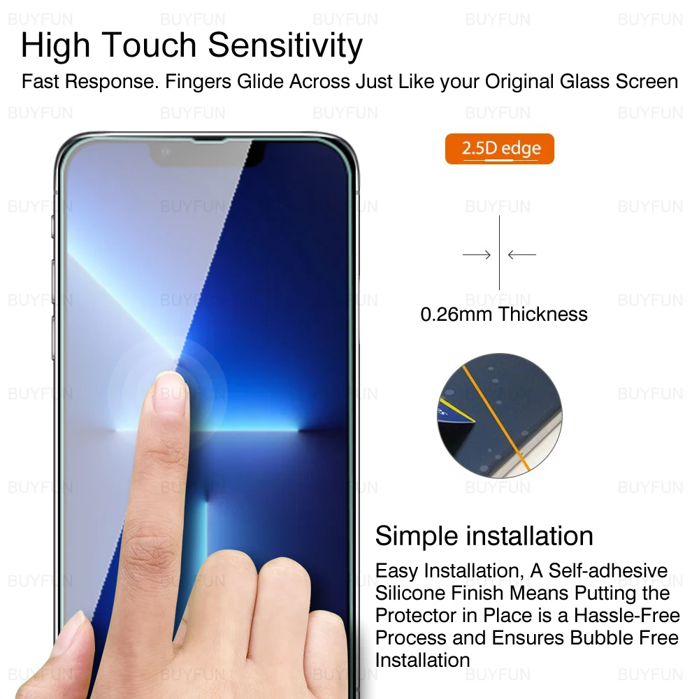 4 шт. закаленное защитное стекло для iPhone 13 12 11 Pro Max, Защит...