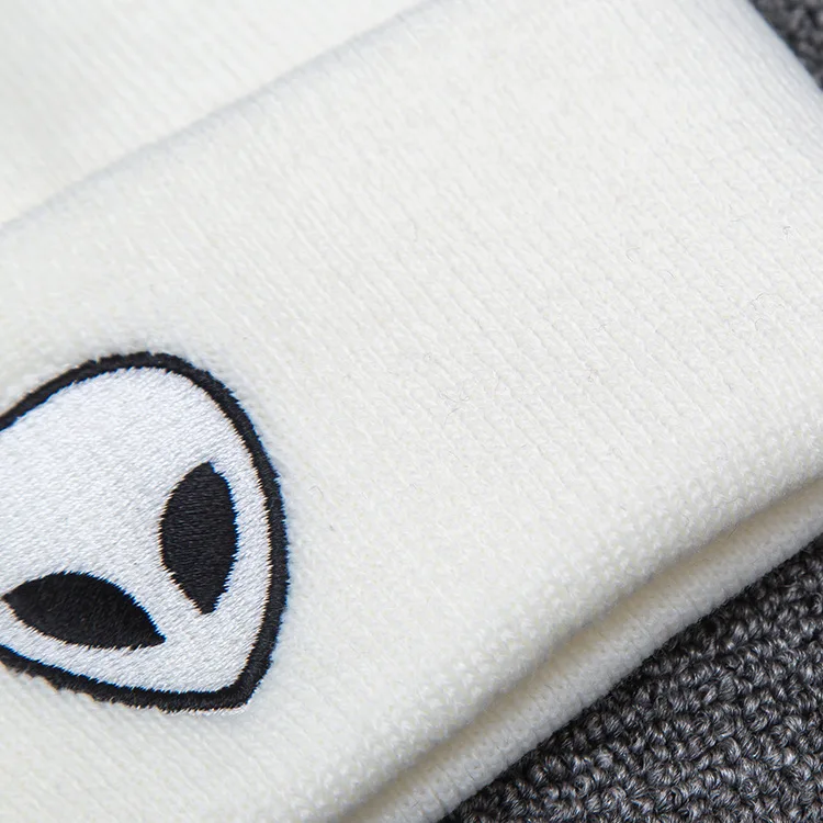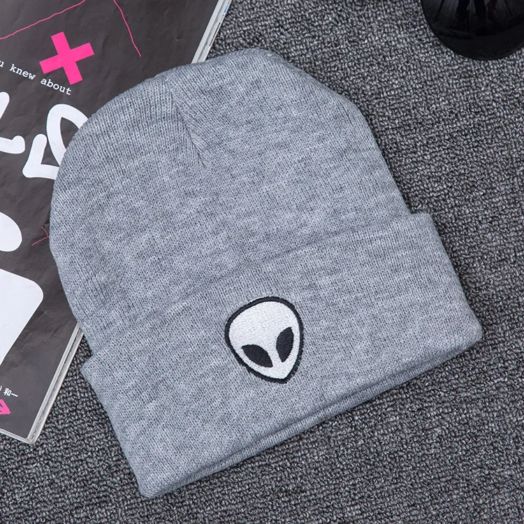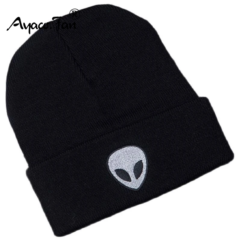 Вязаные шапки-бини, шапки, милая шапка с вышивкой инопланетянина, призрака, черепа, для осени и зимы, мужская шапка, теплая шапка в виде дыни, уличная шапка, женская шапка
