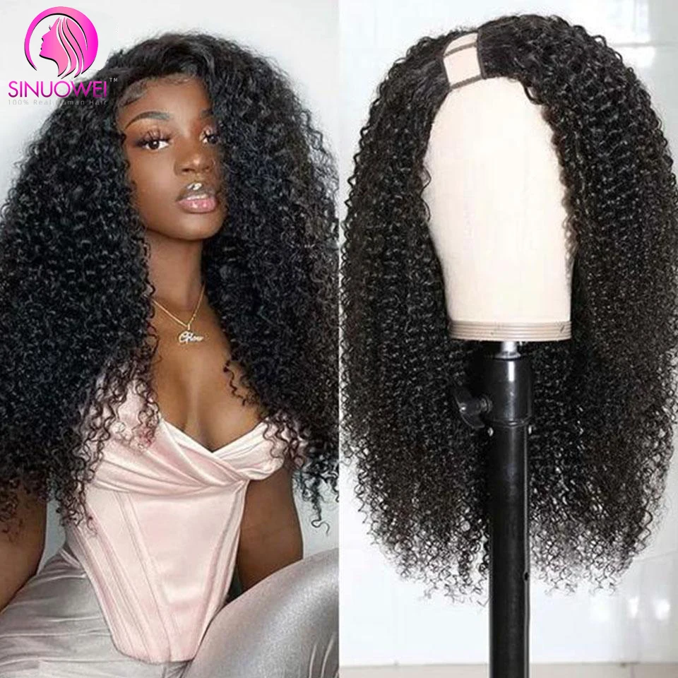 Парик с U-образными вьющимися волосами Sinuowei, парики из человеческих волос для чернокожих женщин, 28-дюймовые кудрявые волосы, парики без клея, натуральные дешевые парики из человеческих волос