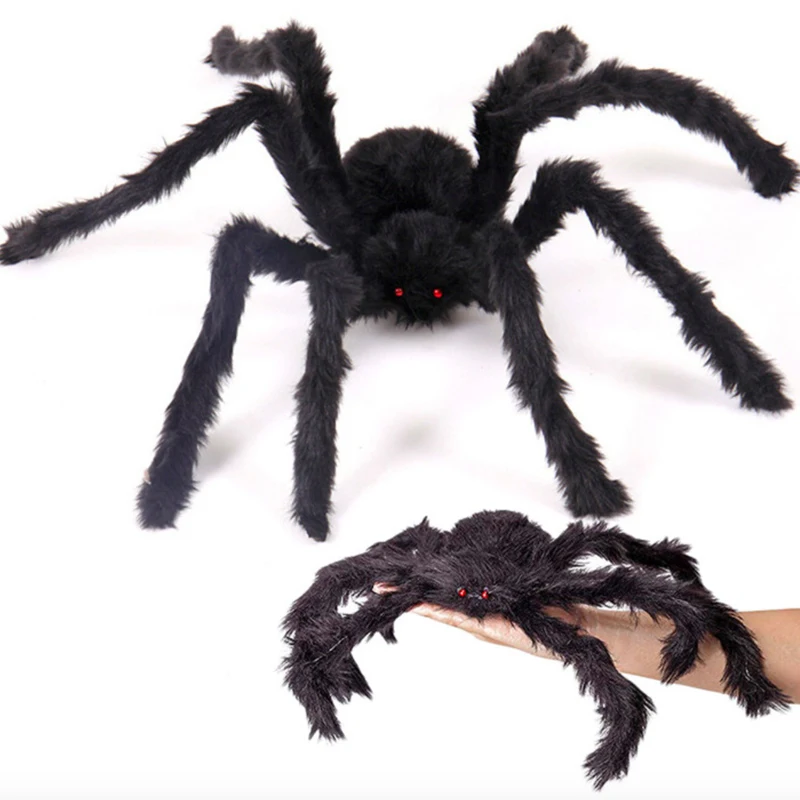 Большой плюшевый паук, 1 шт., 30 см, 50 см, 75 см, изготовлен из проволоки и плюшевый черный и многоцветный стиль для украшения вечерние ринки или Хэллоуина