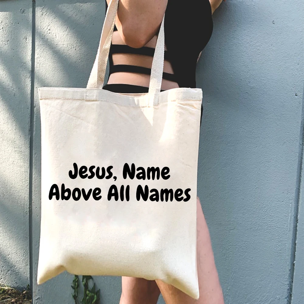 Женская сумка-тоут через плечо с изображением Иисуса и названия выше всего, Повседневная модная Холщовая Сумка для покупок, сумка большой вместимости, христианские подарки