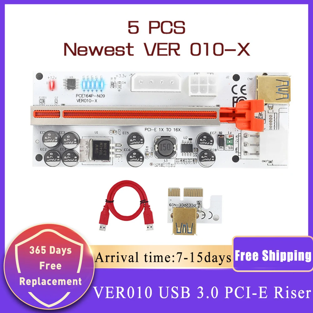 5 шт., Райзер VER010, USB 3,0, PCI-E Райзер, быстрое подключение кабеля для видеокарты X16, Райзер-карта PCI-E для майнинга