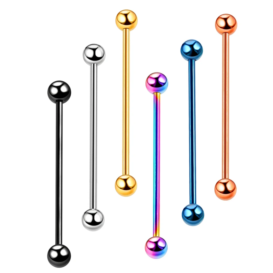 1 шт хирургическая стальная длинная Промышленная Штанга кольцо ушной хрящ Хеликс пирсинг Бар Язык соска Пирсинг уха ювелирные изделия для телаНикакого вреда для человеческого телаСтиль: Промышленная Штанга EarrinОсновной материал: хирургическая сталь 316lРазмер: 1.6x34x5x5ммЦвет: серебристый, черный, золотой, Радужный, темно-синий, розовое золотоУпаковка: Opp мешок