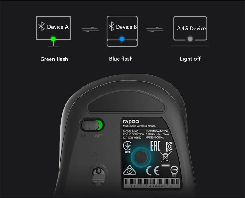 Мышь Компьютерная Rapoo M500G Бесшумная Беспроводная с поддержкой Bluetooth 4,0 и Bluetooth 4,0
