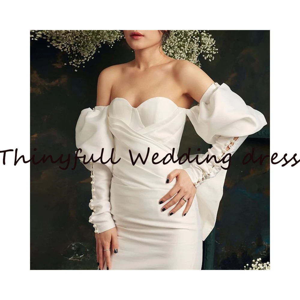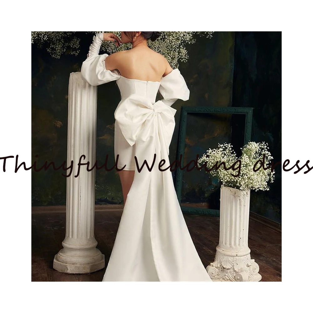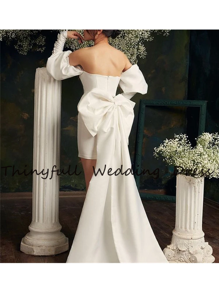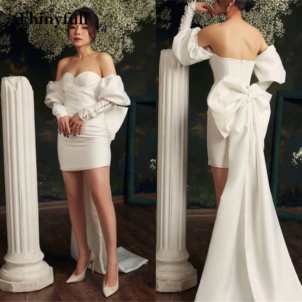 Современное свадебное платье с открытыми плечами и короткими длинными рукавами-фонариками, свадебное платье с большим бантом на спине, свадебное платье невесты, наряды