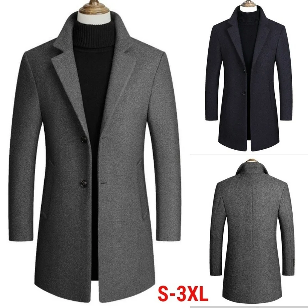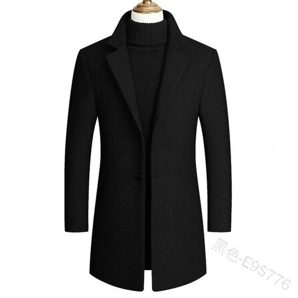 Мужской однобортный Тренч, однотонный жакет из шерсти высокого каче...