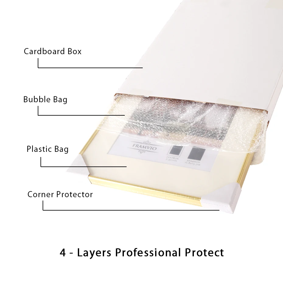 Мы разработали эксклюзивную фирменную упаковку, которая помогает обеспечить безопасную доставку хрупких предметов. Также отлично смотрится в качестве подарка. Рамка упакована с угловыми протекторами, затем помещается в полиэтиленовый пакет, пузырчатую пленку и картонную коробку. Вы можете заказывать с уверенностью, что ваш товар будет доставлен в целости и сохранности. Добавьте в корзину сегодня.