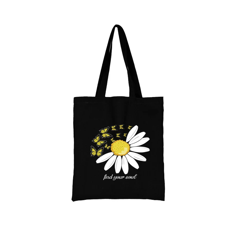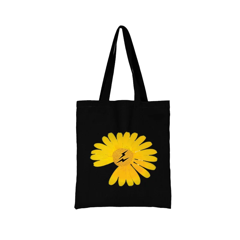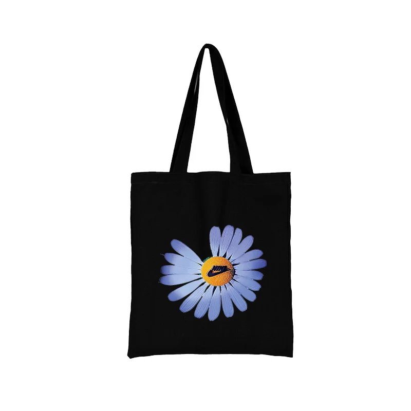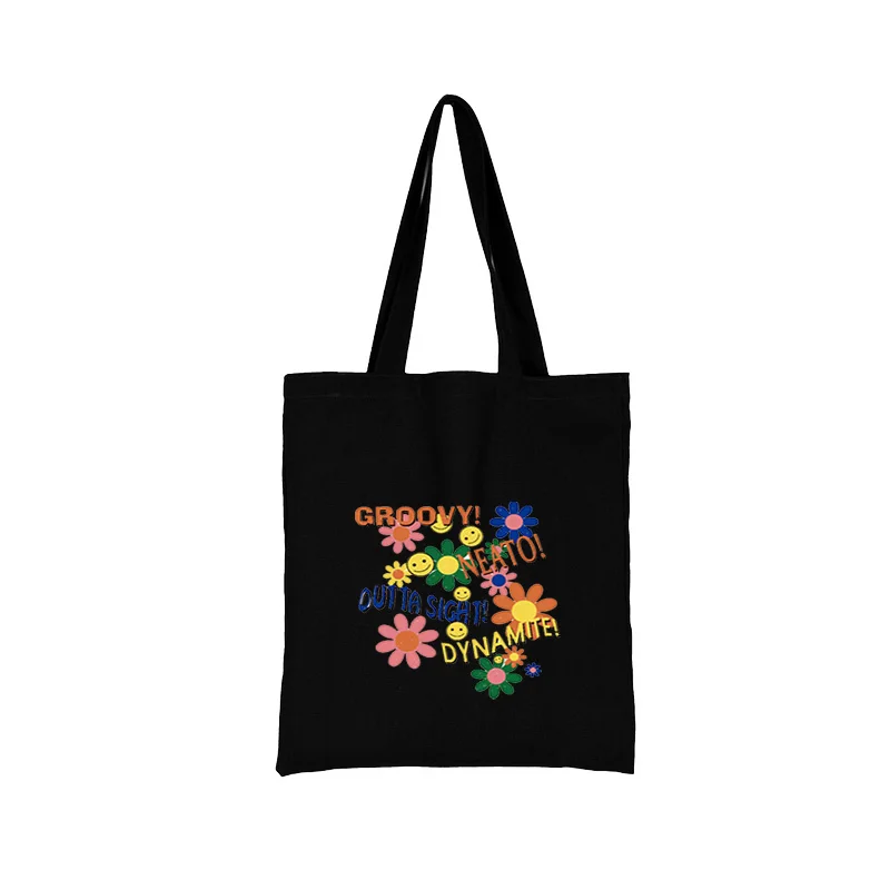 Женские сумки для покупок, модная черная сумка с принтом, Холщовая ...