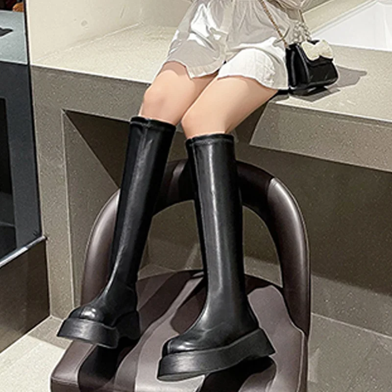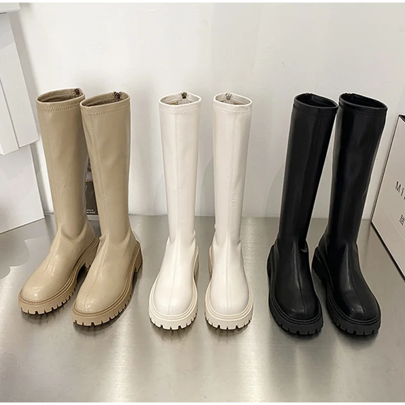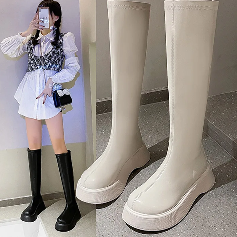Женские сапоги до колена; Осенние ботильоны на толстом каблуке; Модная женская обувь на платформе с круглым носком; Повседневная Удобная Обувь из искусственной кожи