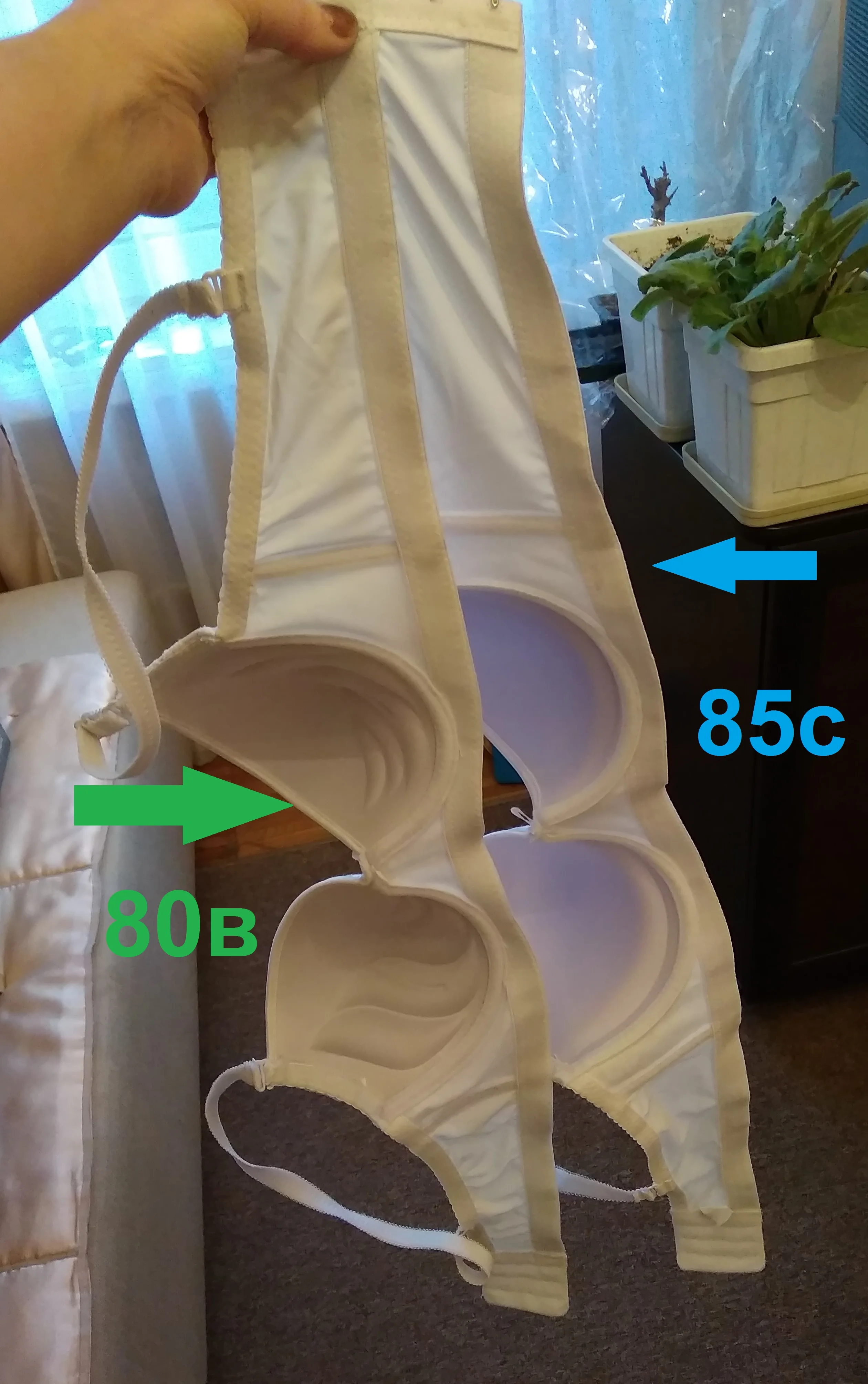 Во второй раз заказала 85С, сел шикарно и по чашке и по объему под грудью.. Мои параметры объем груди 92 см, объем под грудью 80 см - по таблице продавца подходит 80В, но он мне оказался тесен и в объеме и в чашке, сзади на лифчик нависали жиры и грудь после носки в течении дня побаливала от сдавливания пушапом (я 80В заказывала перед этим). На фото бюстики 80В с рифленым пушапом и 85С с обычным пушапом - у них одинаковый объем под грудью 75 см, но разные по глубине чашки! Вот у 85С за счет чашки побольше (поглубже) получается каким-то образом объем под грудью 80 см и на спине не нависают жирки, грудь в чашке пушапом не сдавливается ))) Продавец, паразит, первый лифчик прислал идеальный по качеству, а второй, после взлета в России цен, насборенный по шву чашки, спор открывать не стала. Бюстик шикарный!