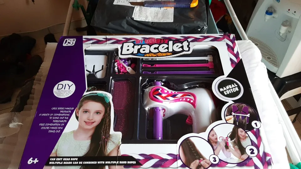 Заказ, пришёл быстро, всё соответствует описанию, коробка замята, но это доставка сработала. Машинка интересная, работает от 3 мезинчиковых батареек ( в комплекте нет). Плетется настоящая трехлучная косичка. Девочкам должна понравится. Спасибо продавцу.
