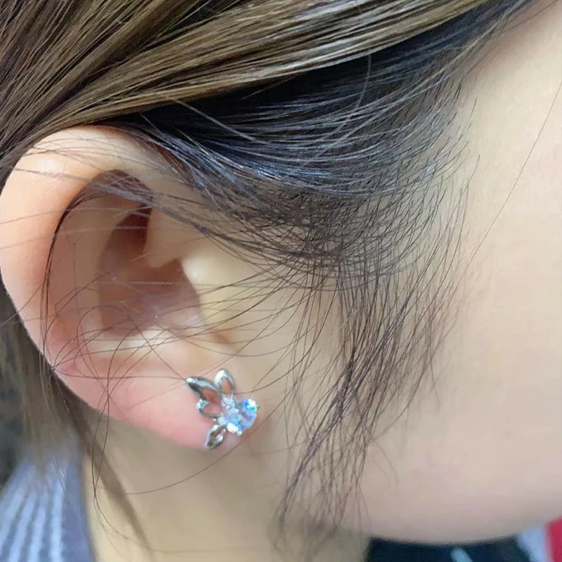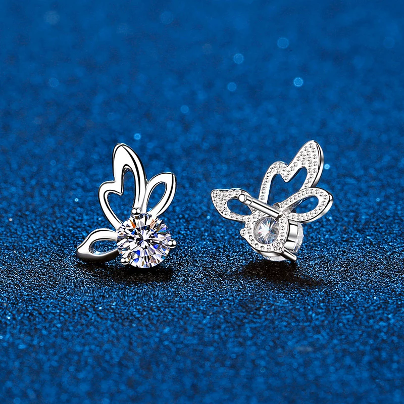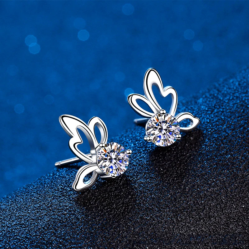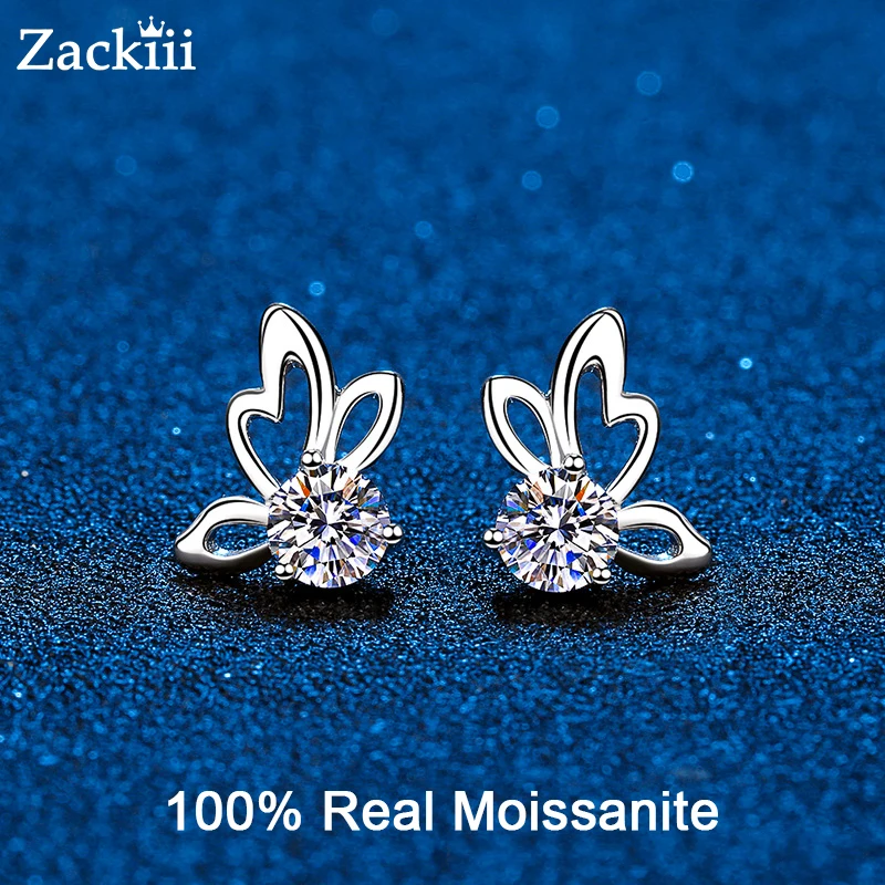 100% настоящий Муассанит бабочки серьги-гвоздики Стерлинговое Серебро 0.6CT 1CT Набор для рисования с круглыми камнями и полотном серьги для женщин и девочек милый обещание подарок