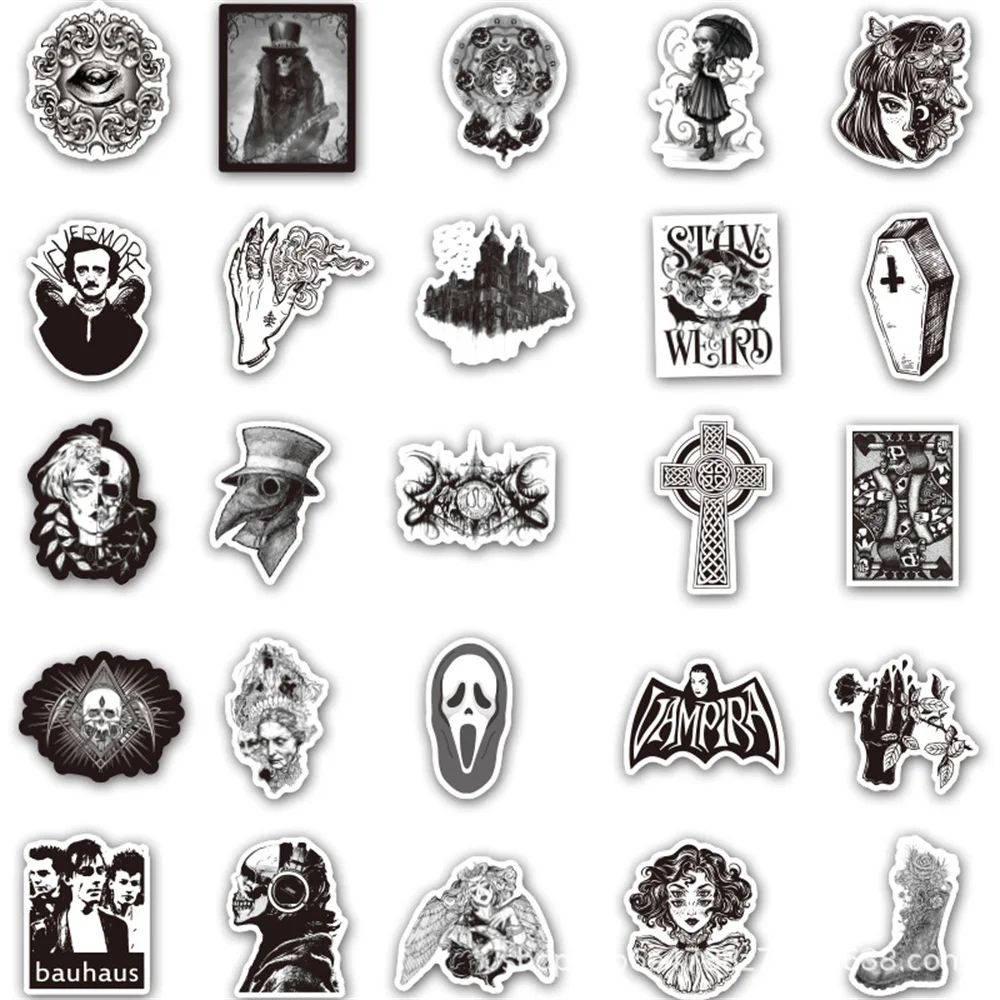 50 шт.лот готические ветряные наклейки черные белые ретро ужасные т...