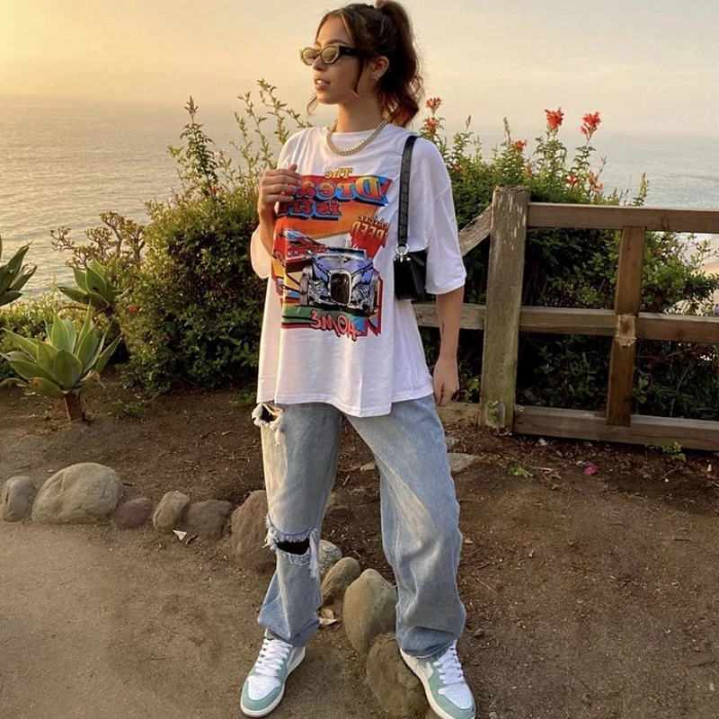 Футболка женская оверсайз с коротким рукавом, винтажный топ с принт...
