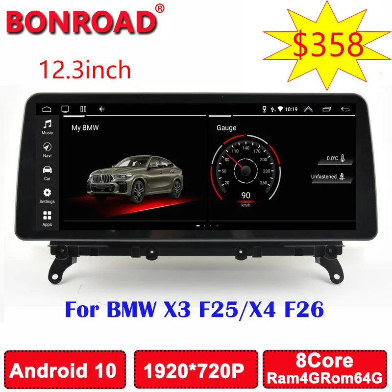 Автомобильный мультимедийный плеер Bonroad, 12,3 дюйма, для BMW X3, X4, F25, F26, Android 10, GPS-навигация, головное устройство, автомобильное стерео радио, магнитофон