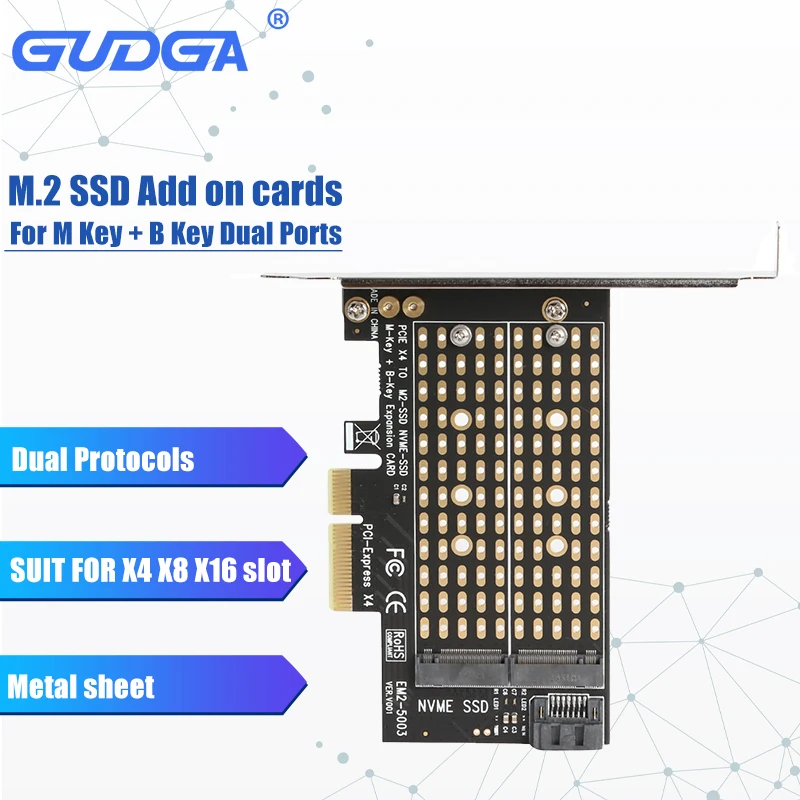 Плата расширения GUDGA M2M.2 SSD на SATA PCI-E Key + B Key, плата адаптера, плата расширения для PCI Express 3,0x4 2230-2280-2242
