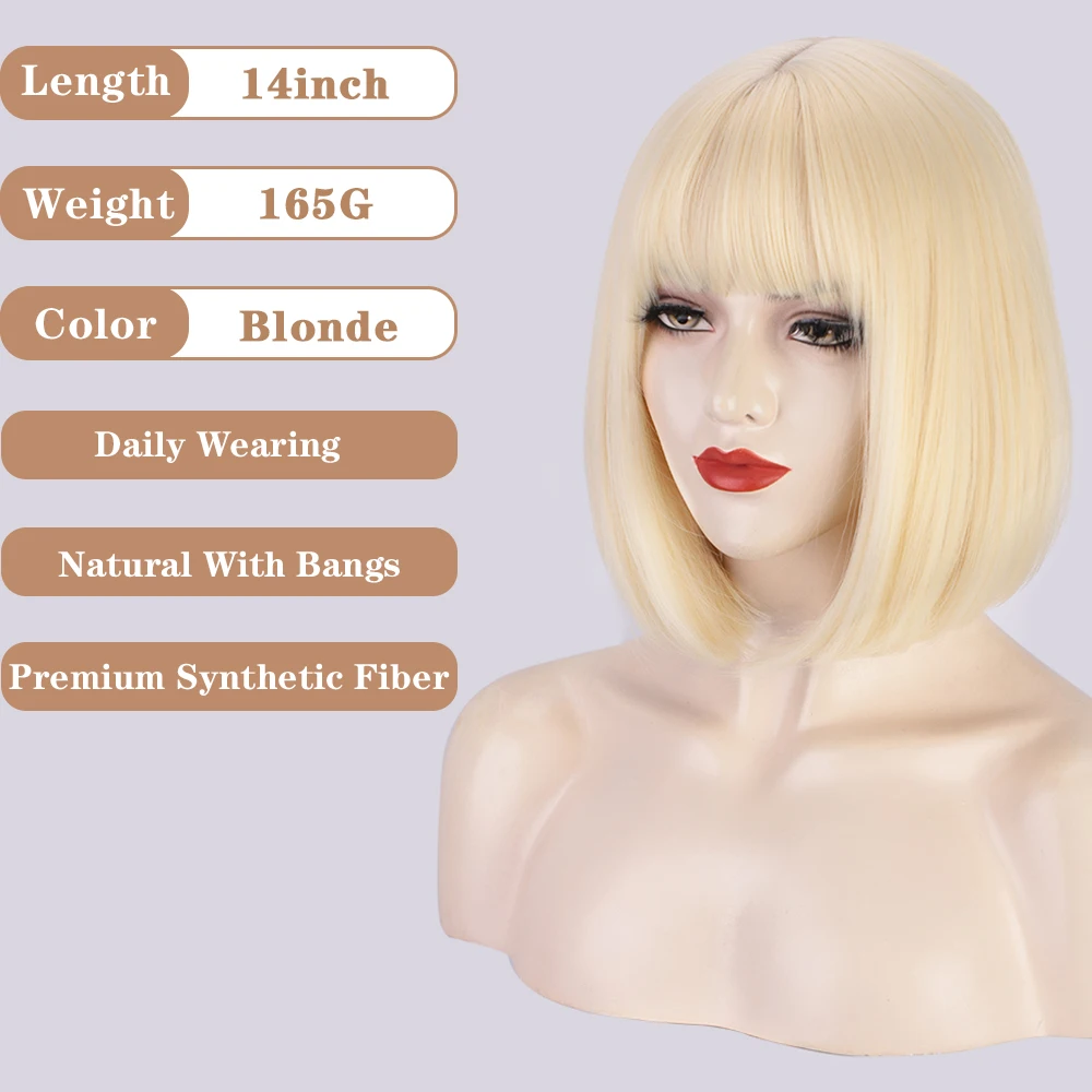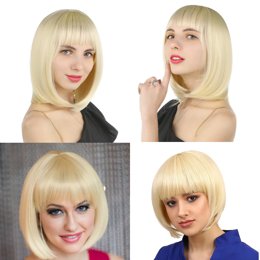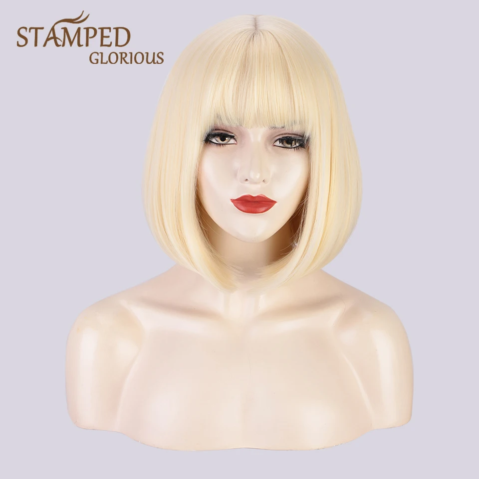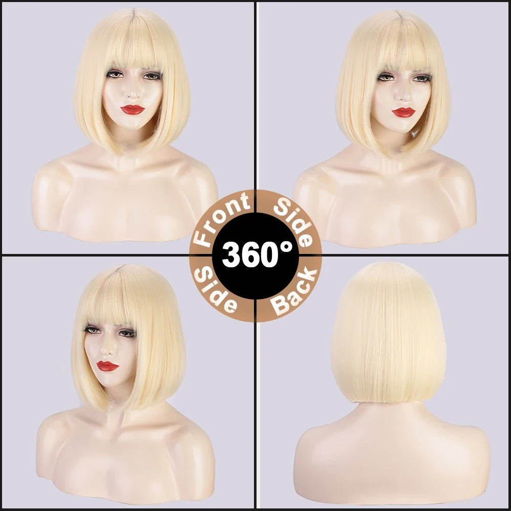 Великолепный Синтетический парик Боб с челкой для женщин светильник лый светлый короткий парик, термостойкий волоконный парик для косплея, парик для повседневвечерние