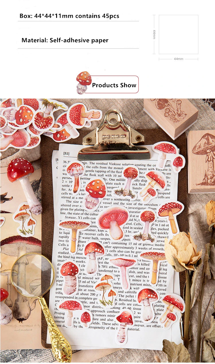 XINAHER 45 шт.кор. винтажный гриб, мини-Декор, бумажная наклейка, у...