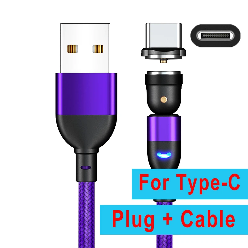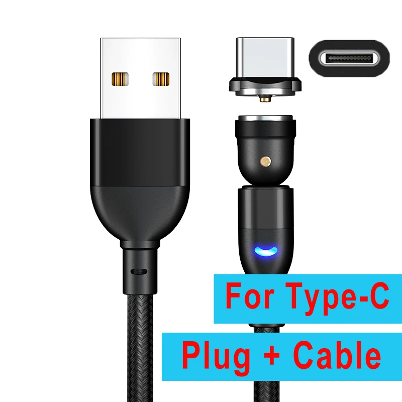 Магнитный USB-кабель типа C, зарядное устройство, шнур, вращение на...