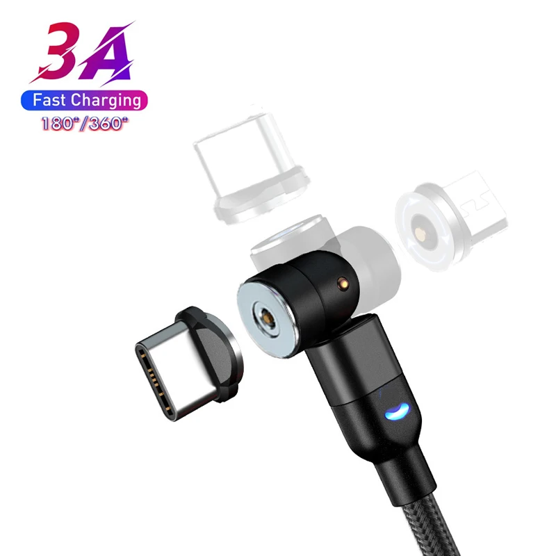 Вращающийся на 540 градусов Магнитный кабель Micro USB Тип C, кабел...