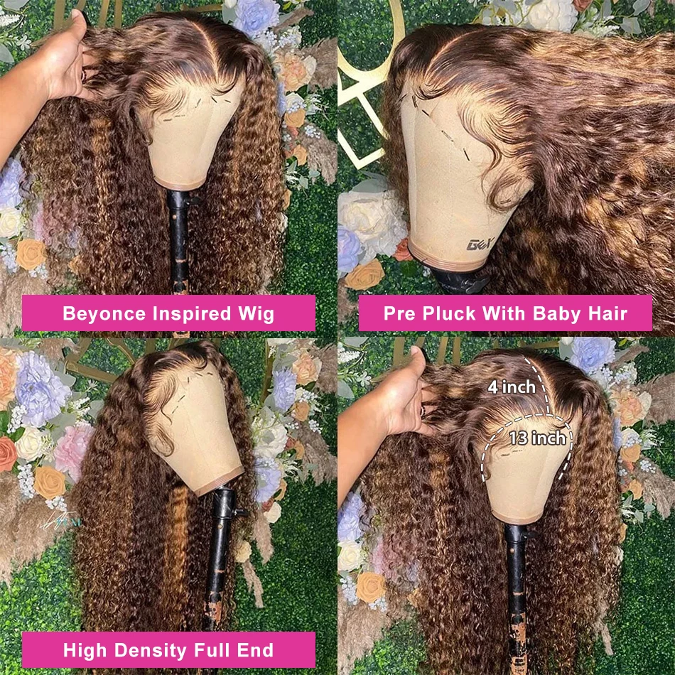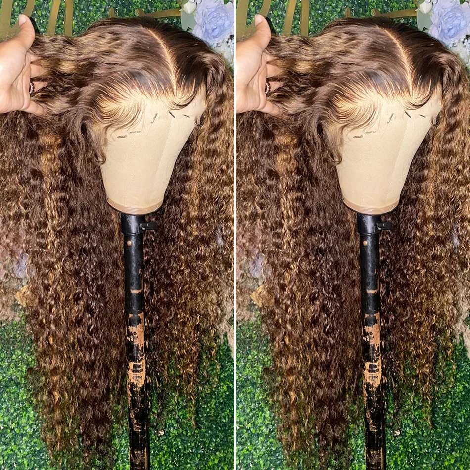 Парик женский длинный из натуральных вьющихся волос с эффектом омбре, 30, 32 дюйма, 13x6, 427 цветов, 4x4