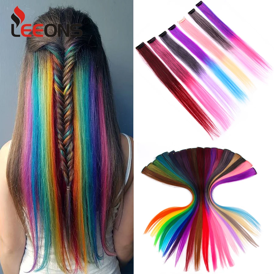 Синтетические шиньоны с длинным зажимом один шиньон прямые Красочные шиньоны для детей радужные пряди волос