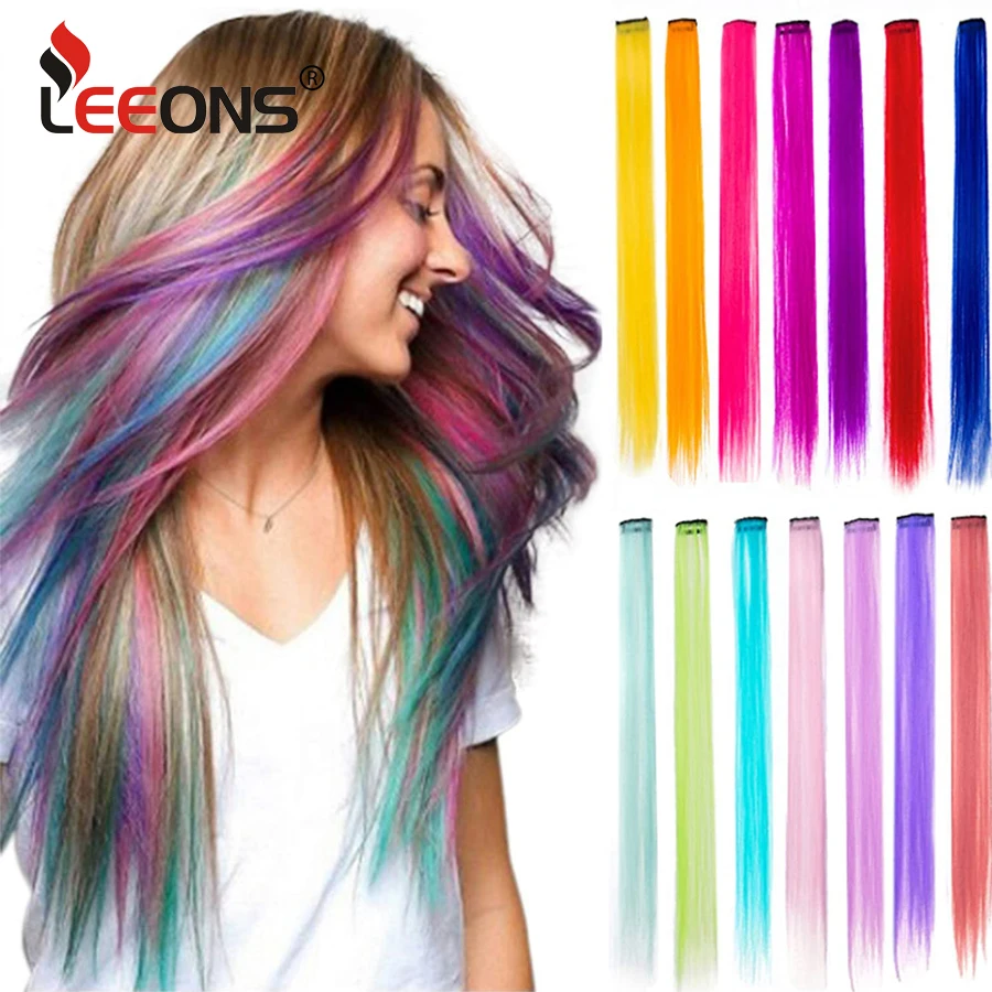 Синтетические прямые заколки мультицветов, аксессуары для волос, красочные кусочки волос, праздничные украшения, термостойкие кусочки для детей