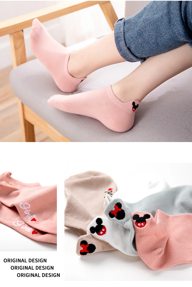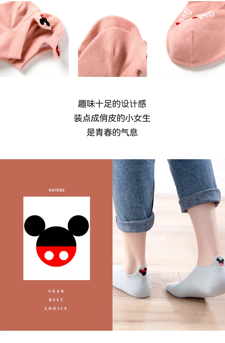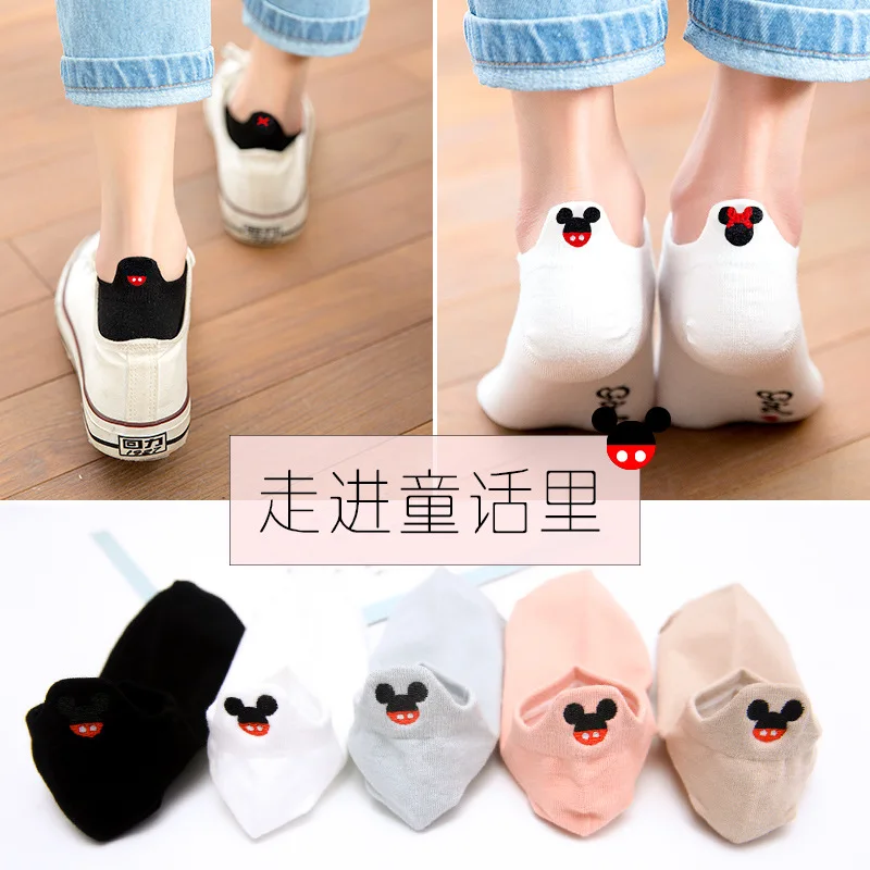 Disney Mickey/носки с Минни; Сезон осень-лето; Короткие носки; Милые носки для девочек; Хлопковые носки с рисунками животных; Корейские женские спортивные носки